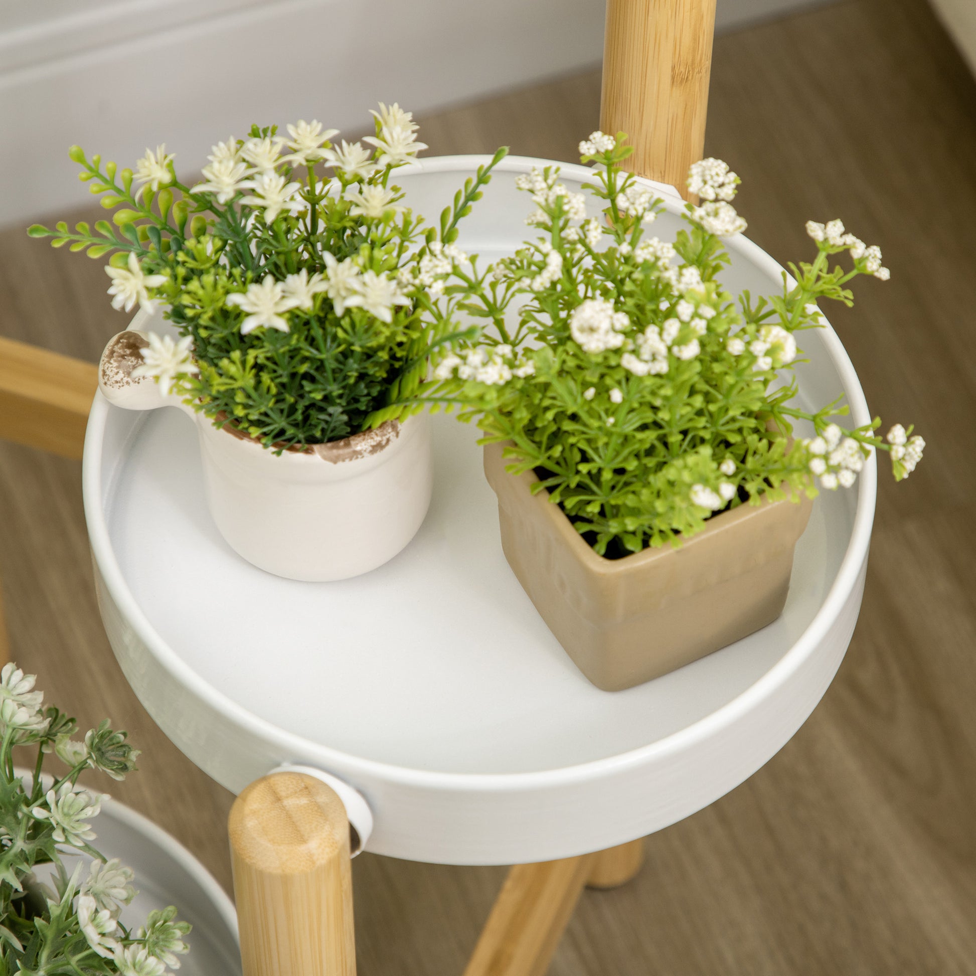 Support de Plantes en Bambou Outsunny avec 4 Étagères Rondes Charge 20 kg pour Intérieur et Extérieur Ø28x80 cm Naturel et Blanc