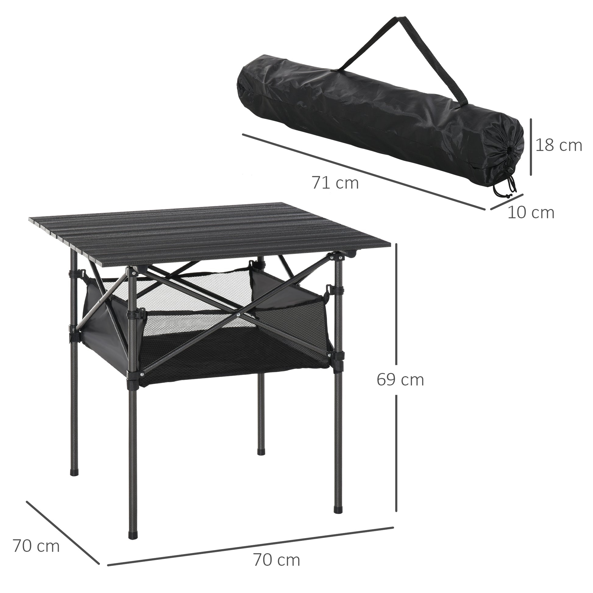 Table de Camping Pliable en Aluminium Outsunny avec Sac en Maille - Table de Pique-Nique Portable pour Camping, Jardin, Fête, Balcon - Noir 70 x 70 x 69 cm
