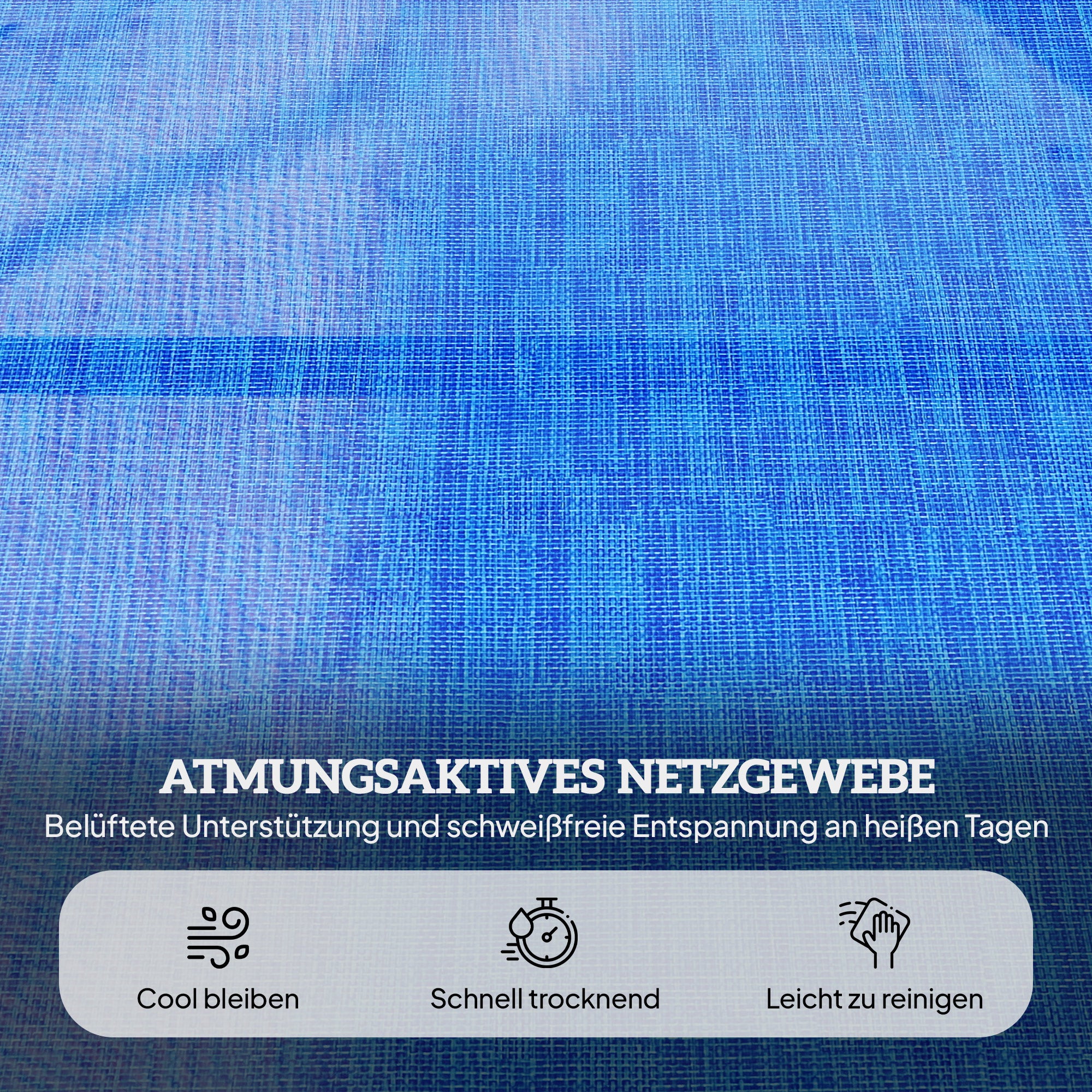 - - Confort d'assise : Conçue avec un cadre en métal à finition poudrée, recouverte d'un tissu en maille respirant et résistant aux intempéries, assurant une haute capacité de charge, facile à nettoyer et résistante aux UV. Cette chaise longue d'extérieur présente un trou pour le visage, une large zone d'assise pour un confort supplémentaire et procure une sensation de confort et de simplicité