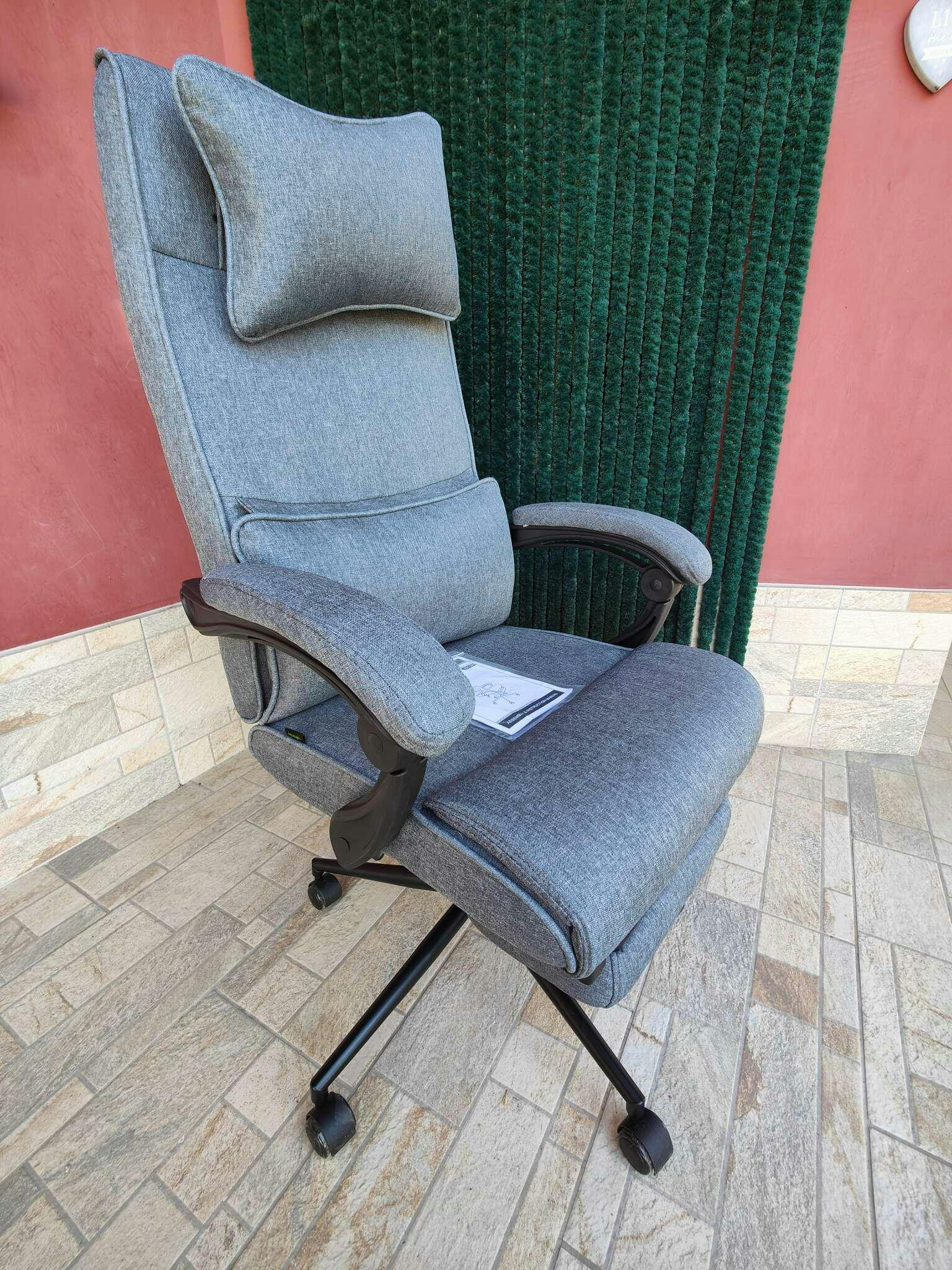Chaise de Bureau Ergonomique et Rembourrée Vinsetto avec Hauteur Réglable, Chaise d'Étude avec Accoudoirs, Dossier, Repose-pieds et 5 Roues, 66x69x115-123cm, Gris
