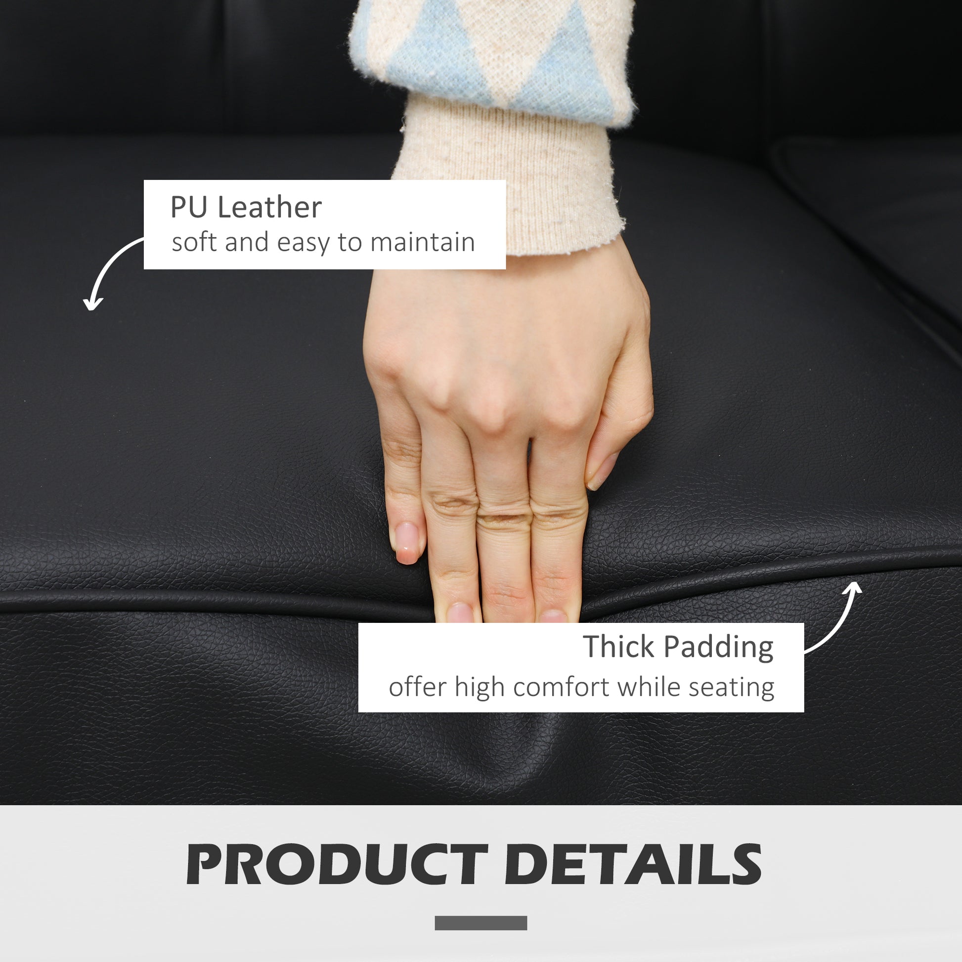 HOMCOM Canapé 2 Places en Similicuir Style Chesterfield, Canapé Lavec Rembourrage Épais et Accoudoirs, Canapé avec Pieds en Bois de Caoutchouc pour Salon et Bureau, Noir