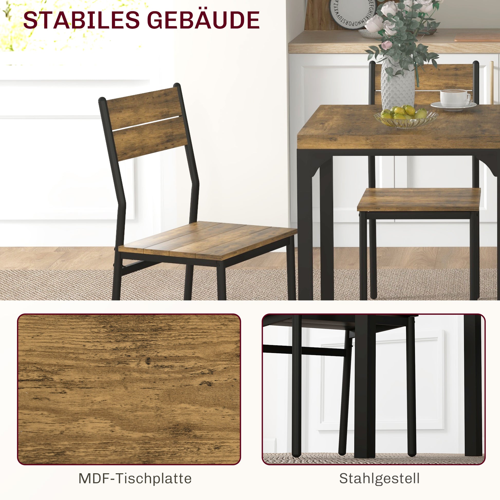 HOMCOM Ensemble de salle à manger 3 pièces : Table de salle à manger avec 2 chaises, Combinaison de table de cuisine avec cadre en métal, Marron rustique