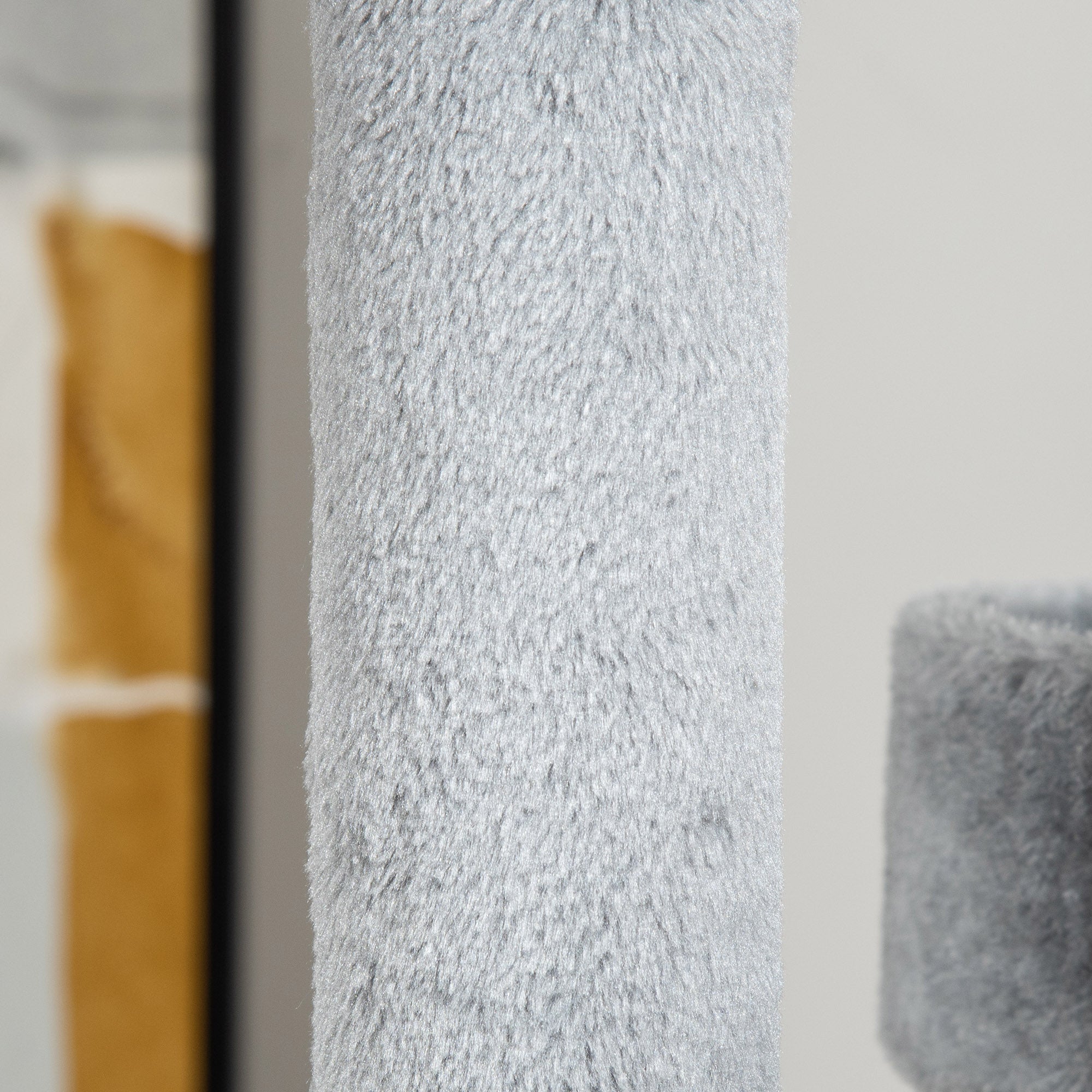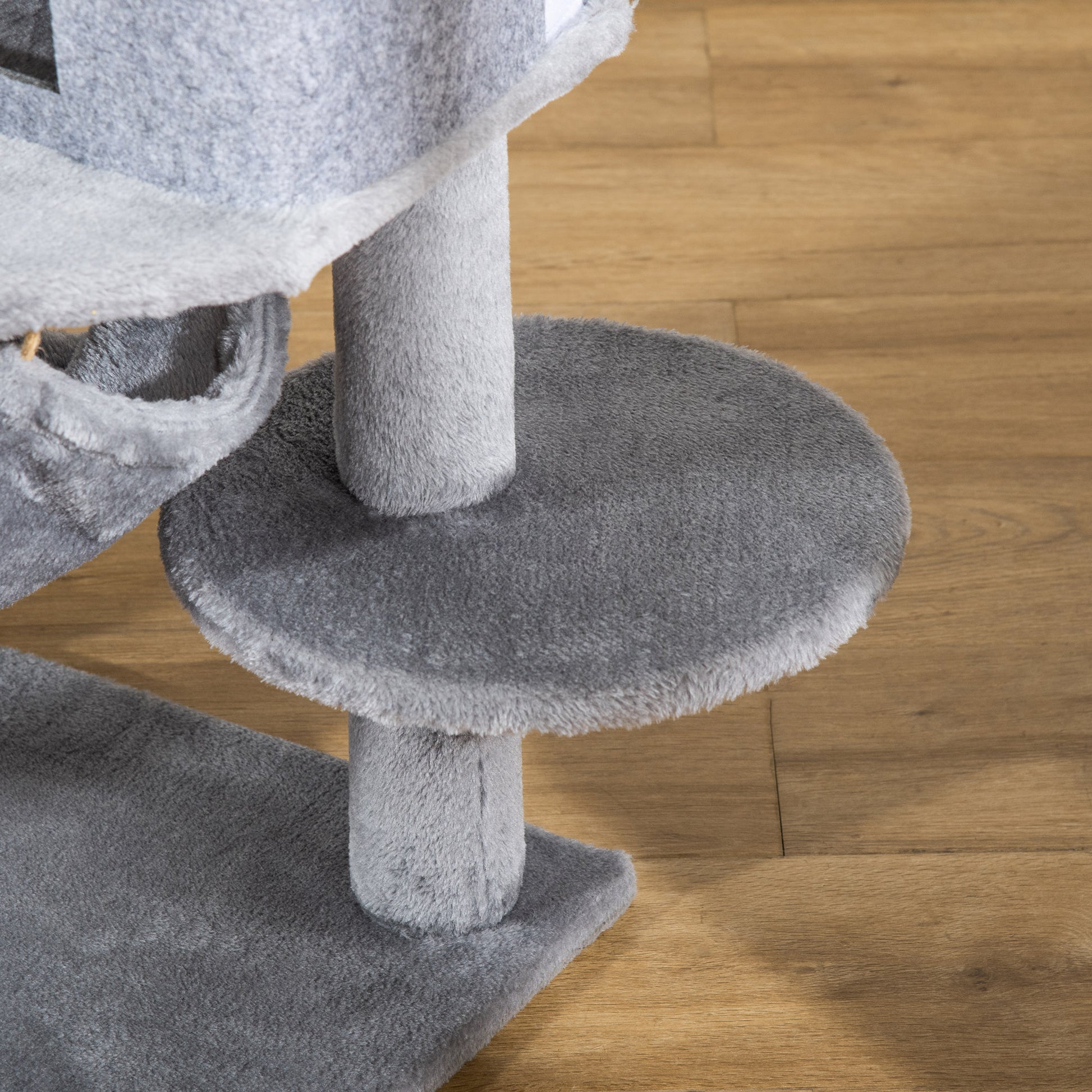 Arbre à Gratter PawHut pour Chat 48x48x107 cm avec Hamac et Caverne en Feutre Détachables, Lits en Peluche, Plates-formes Multiples, Poteaux en Sisal et Jouets Gris