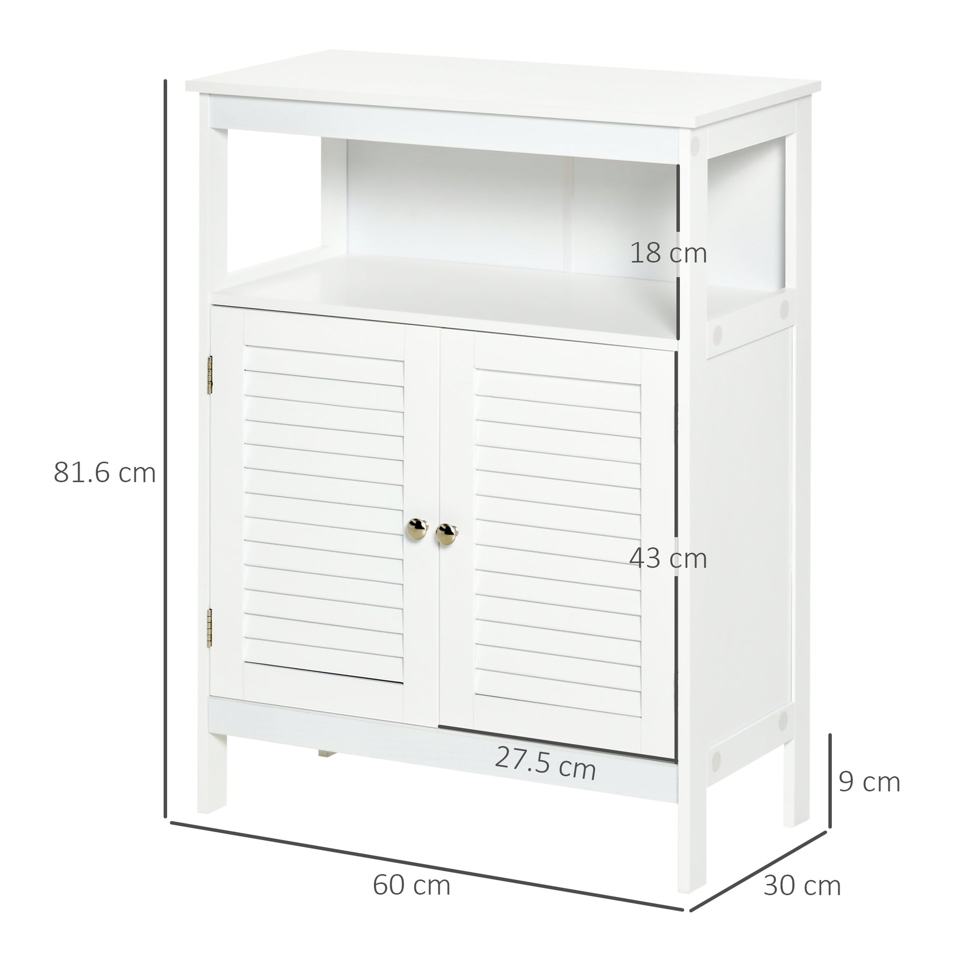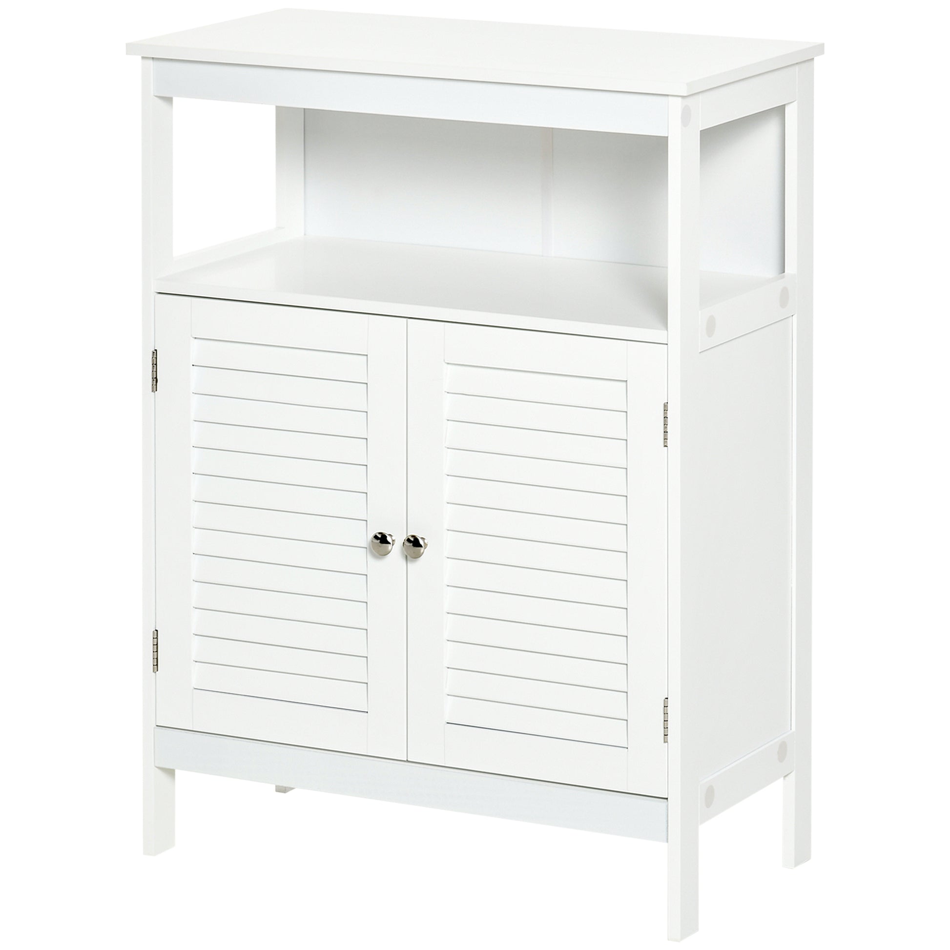 Armoire auxiliaire de salle de bain kleankin avec 2 portes à persienne et étagère ouverte – Grand espace de rangement – Design moderne 60x30x81,6 cm Blanc