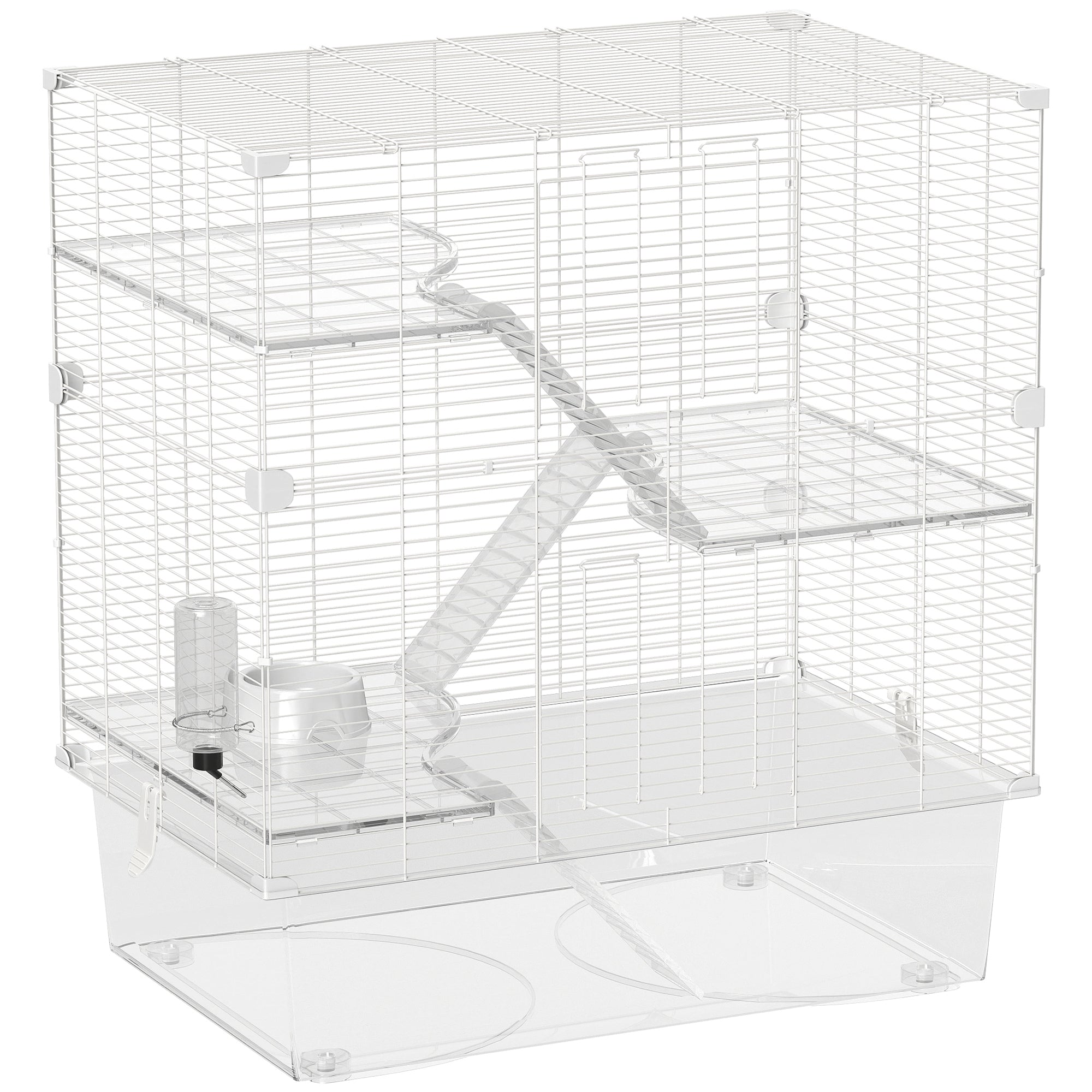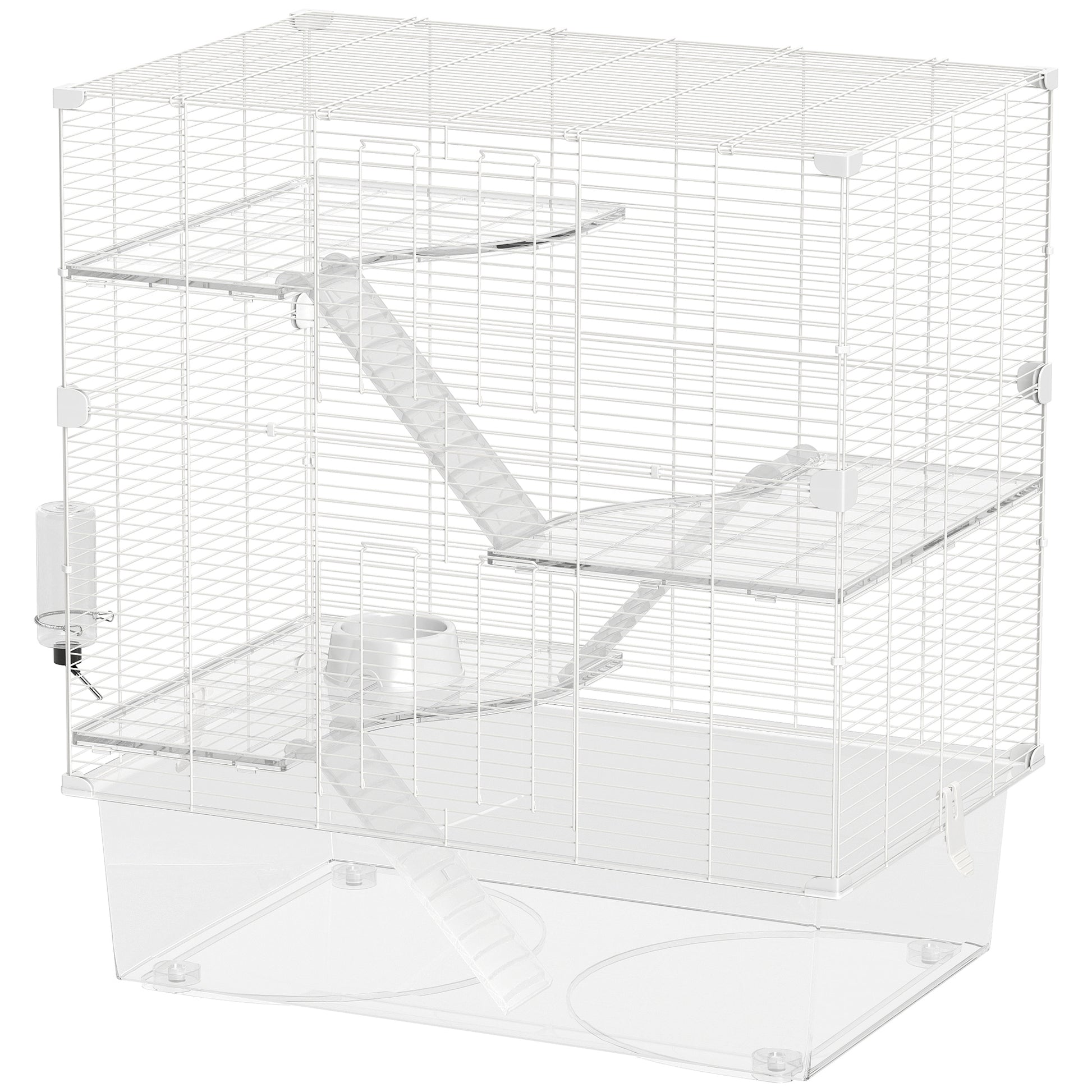 Cage pour petits animaux PawHut 4 niveaux avec plateau profond, rampes, plateformes, mangeoire et abreuvoir pour chinchillas, furets et hamsters 73x47x80 cm Blanc