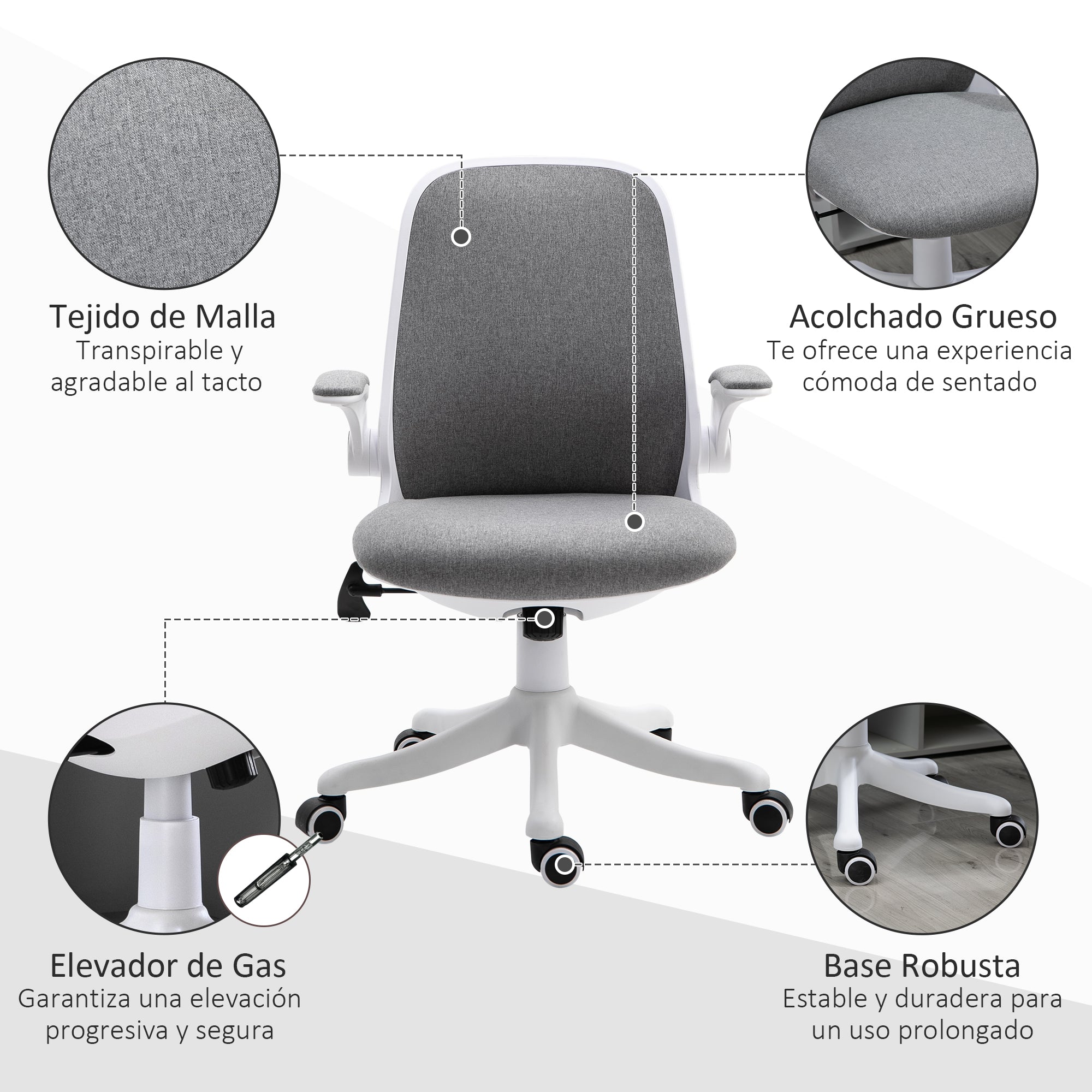 Chaise de bureau Vinsetto pivotante avec fonction inclinable, hauteur réglable, accoudoirs à levage, capacité de charge 120 kg pour bureau, chambre, dortoir 62,5x60x94-104 cm Gris