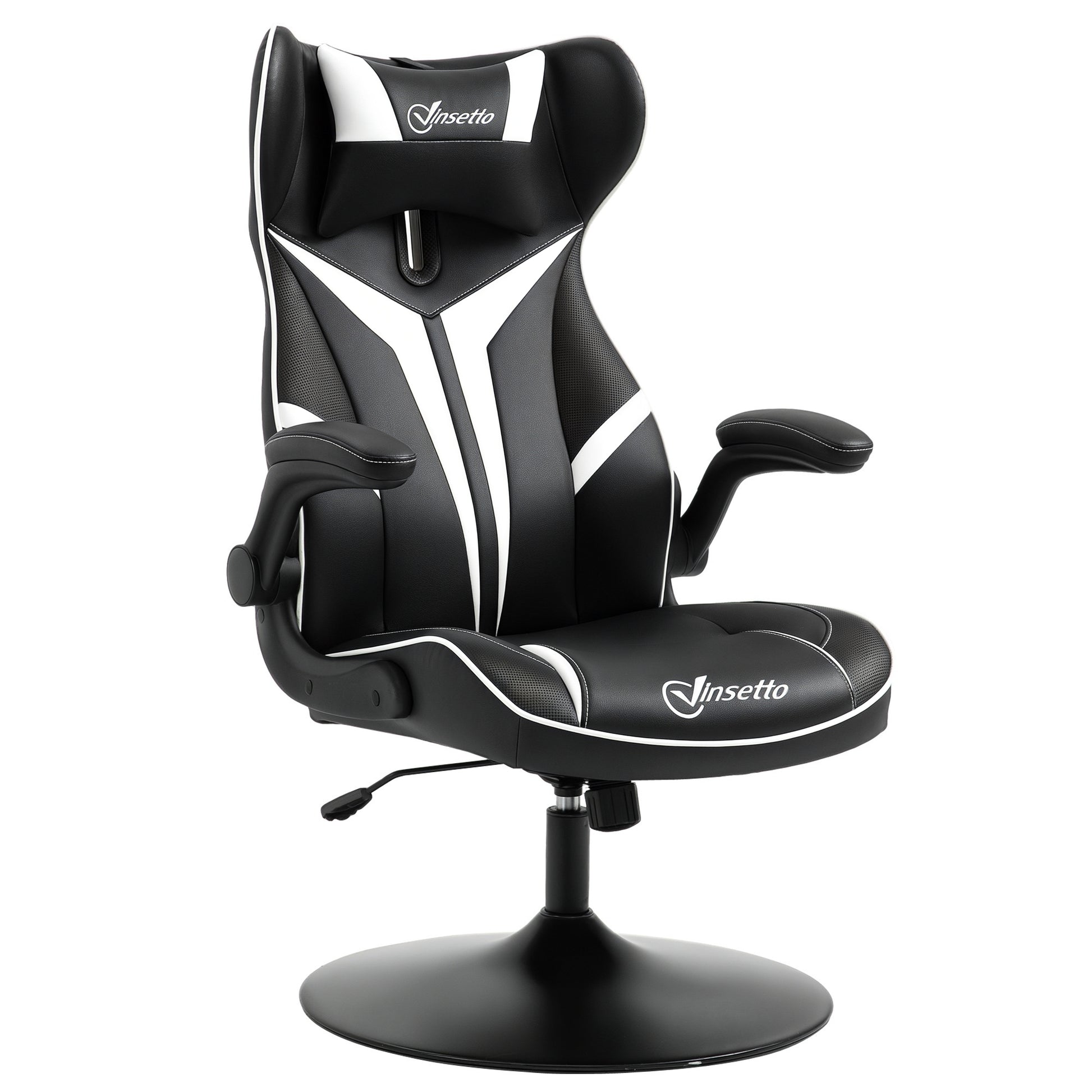 Chaise de Gaming Vinsetto - Chaise Ergonomique avec Fonction Bascule - Chaise Pivotante Hauteur Réglable - Acier Noir + Blanc 67 x 70 x 106-112 cm