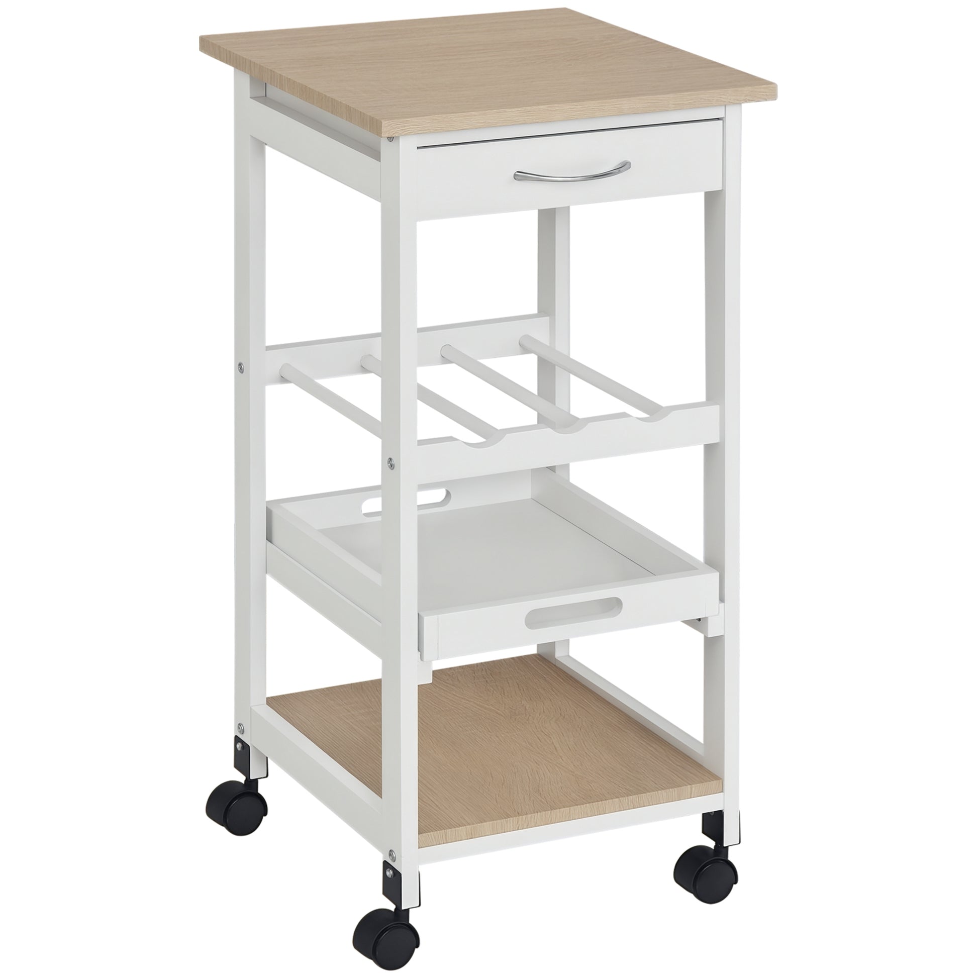 Chariot de Cuisine HOMCOM à 4 Niveaux avec Tiroir, Étagères et Range-Bouteilles – Idéal pour la Cuisine, Salle à Manger et Salon 37x37x76 cm Blanc