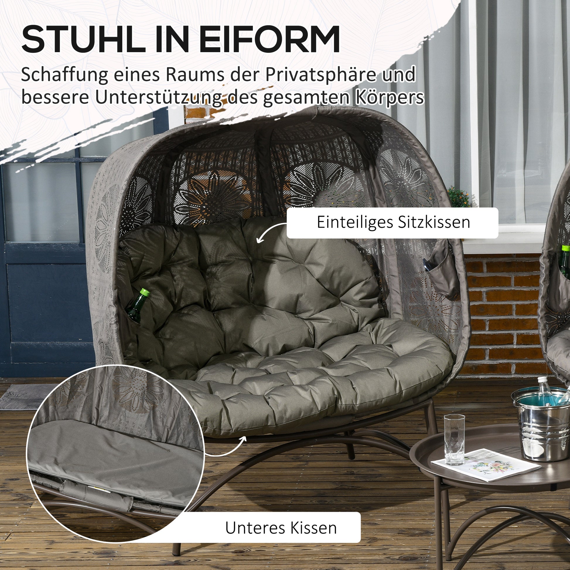 Ensemble de Chaises de Jardin Outsunny 3 Pièces, Fauteuil en Rotin avec Panier de Siège Pliable, Table Basse, Coussins, Chaise Longue pour Terrasse, Balcon, Acier, Sable