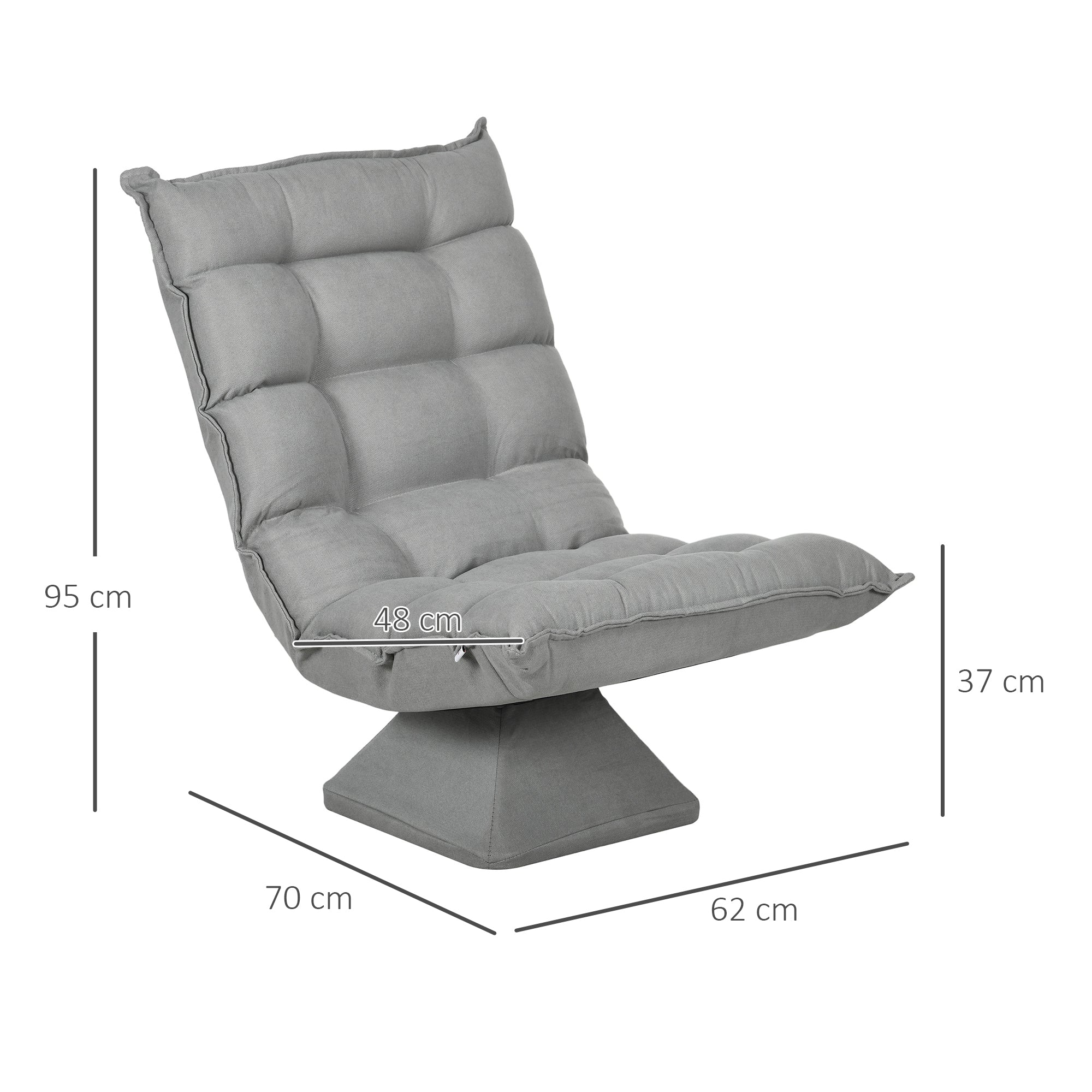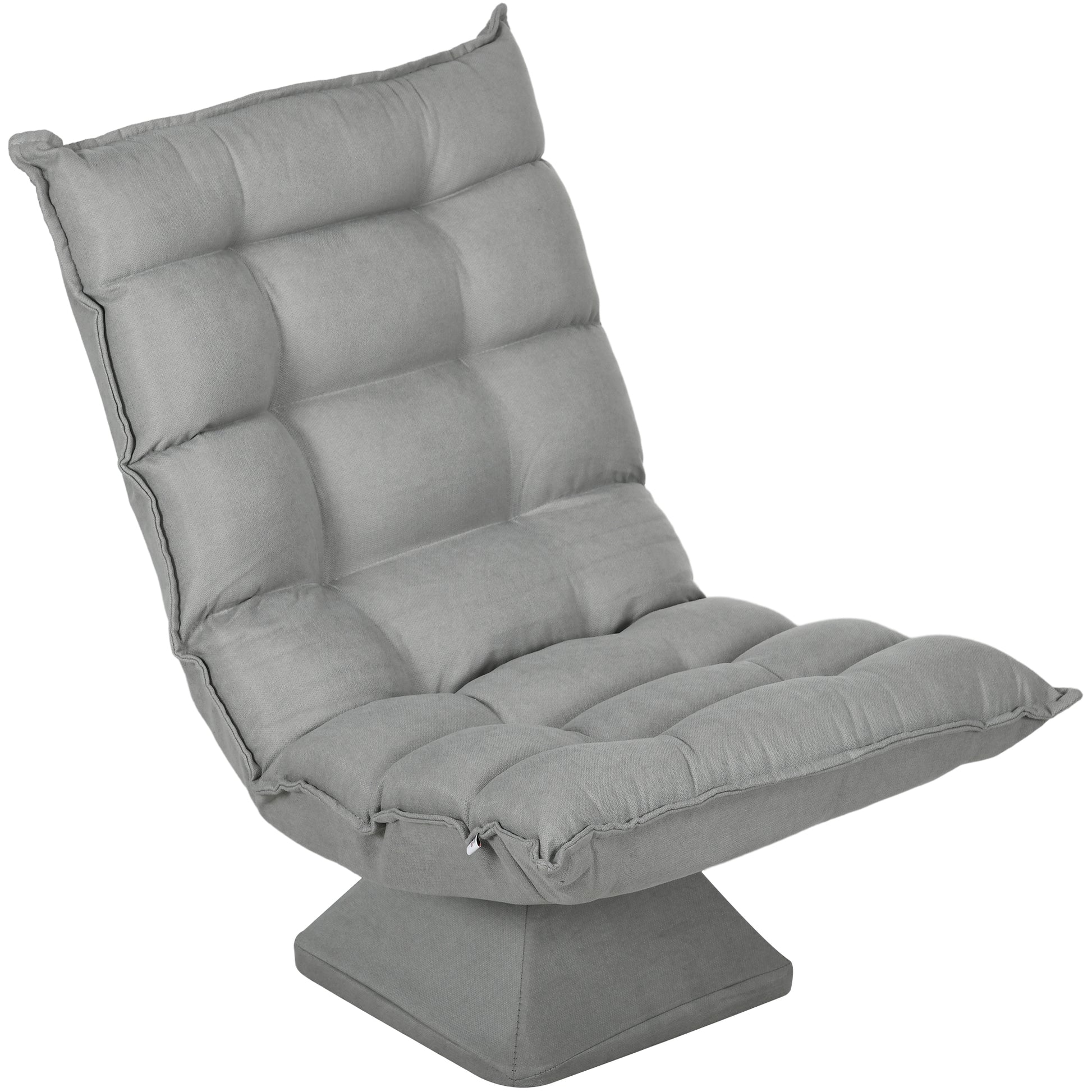 Fauteuil sur le sol HOMCOM avec dossier ajustable, chaise de méditation pivotante avec base, canapé paresseux, fauteuil rembourré pour bureau, salon, gris clair