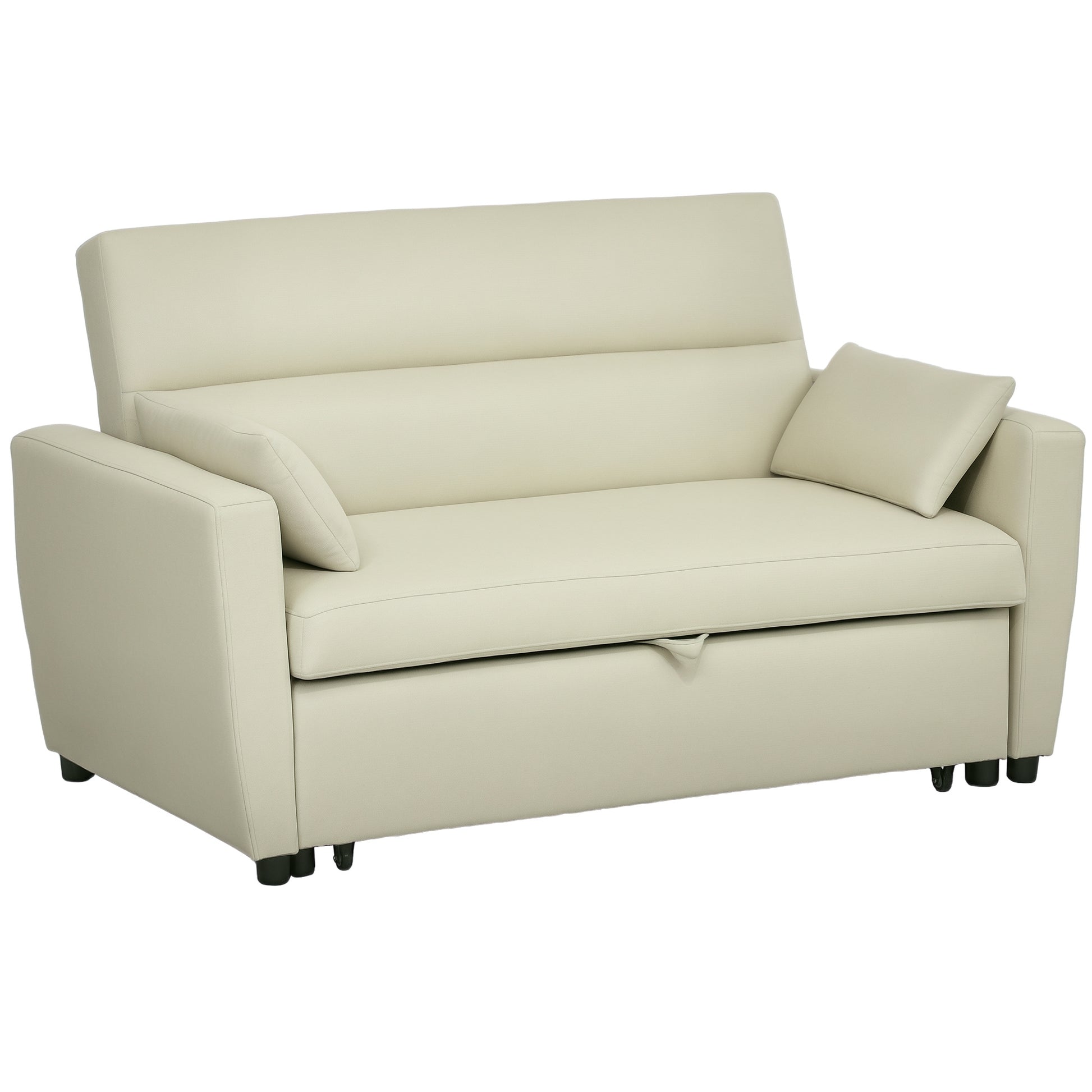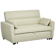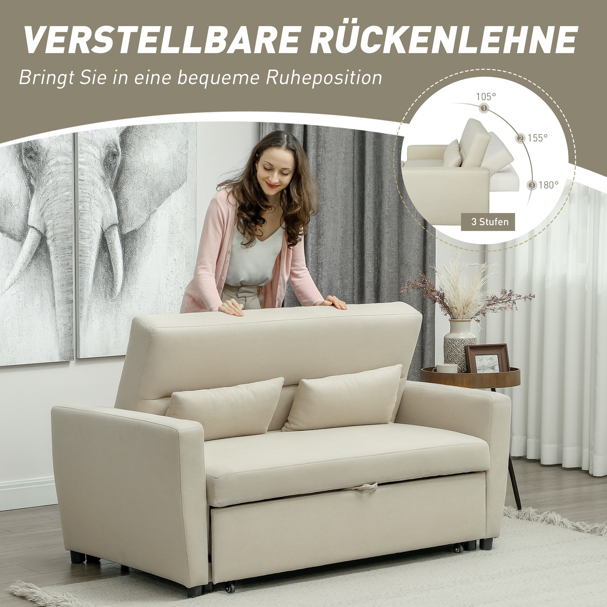 HOMCOM Canapé-Lit, Canapé 2 Places avec Fonction Lit, Dossier Réglable, Canapé avec Coussins, Aspect Velours, Canapé-Lit pour Salon, Chambre d'Invité, Beige