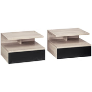 HOMCOM Ensemble de 2 Tables de Nuit Flottantes à Suspendre avec 1 Tiroir et Étagère Ouverte pour Chambre 35x32x22,5 cm Chêne et Noir