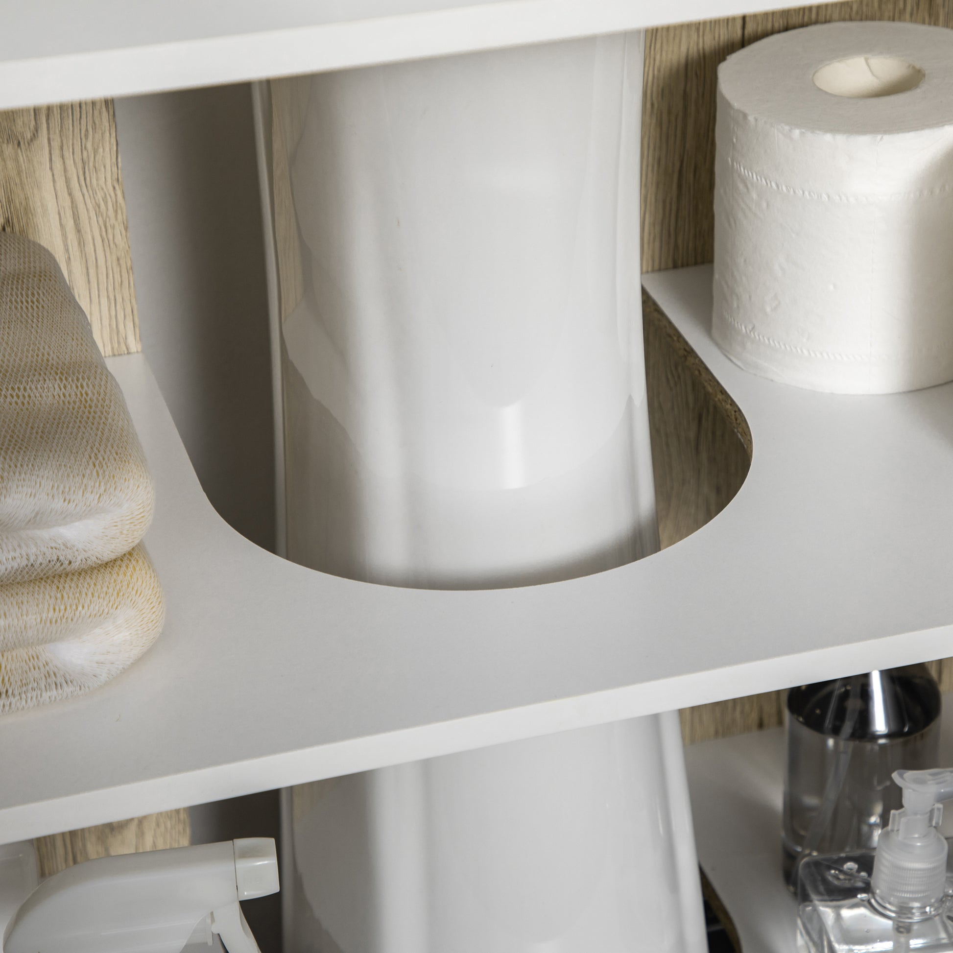 Meuble Sous Lavabo en Bois kleankin avec 2 Portes, Étagère et Pieds en Acier 60x30x60 cm Chêne et Blanc