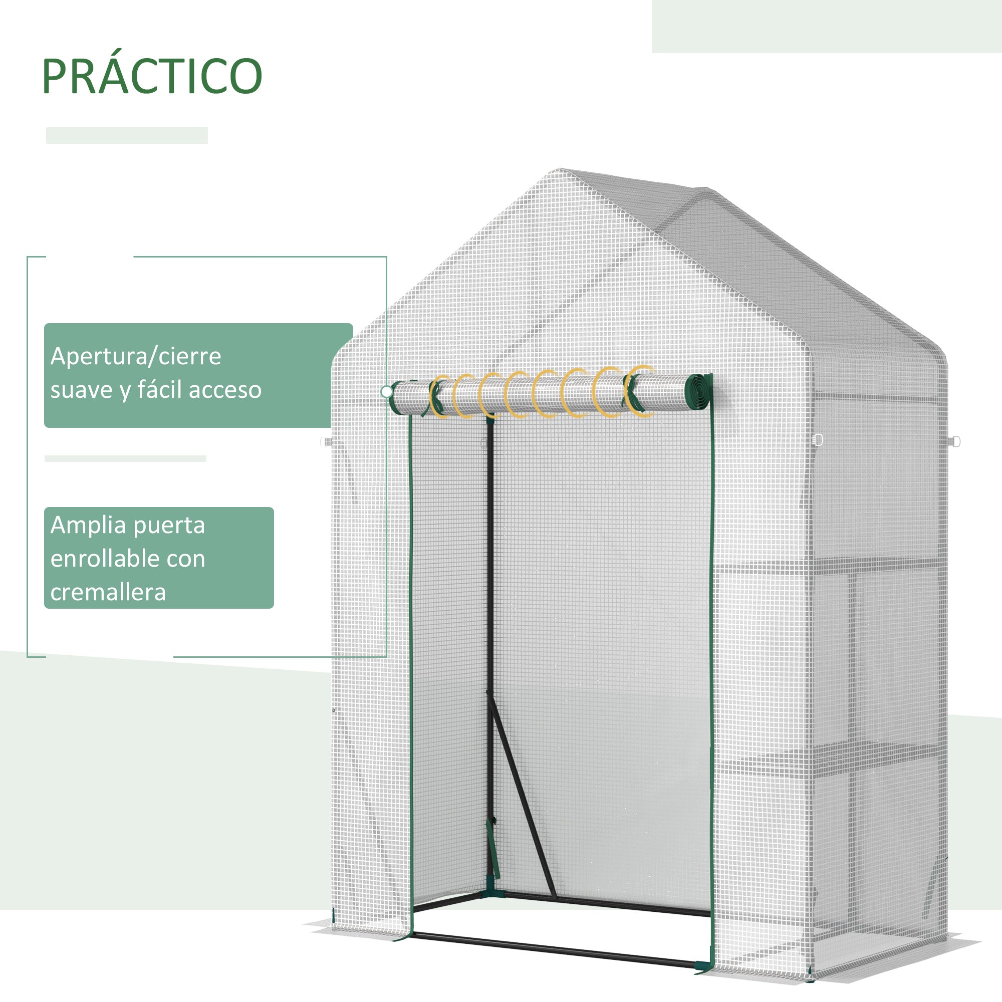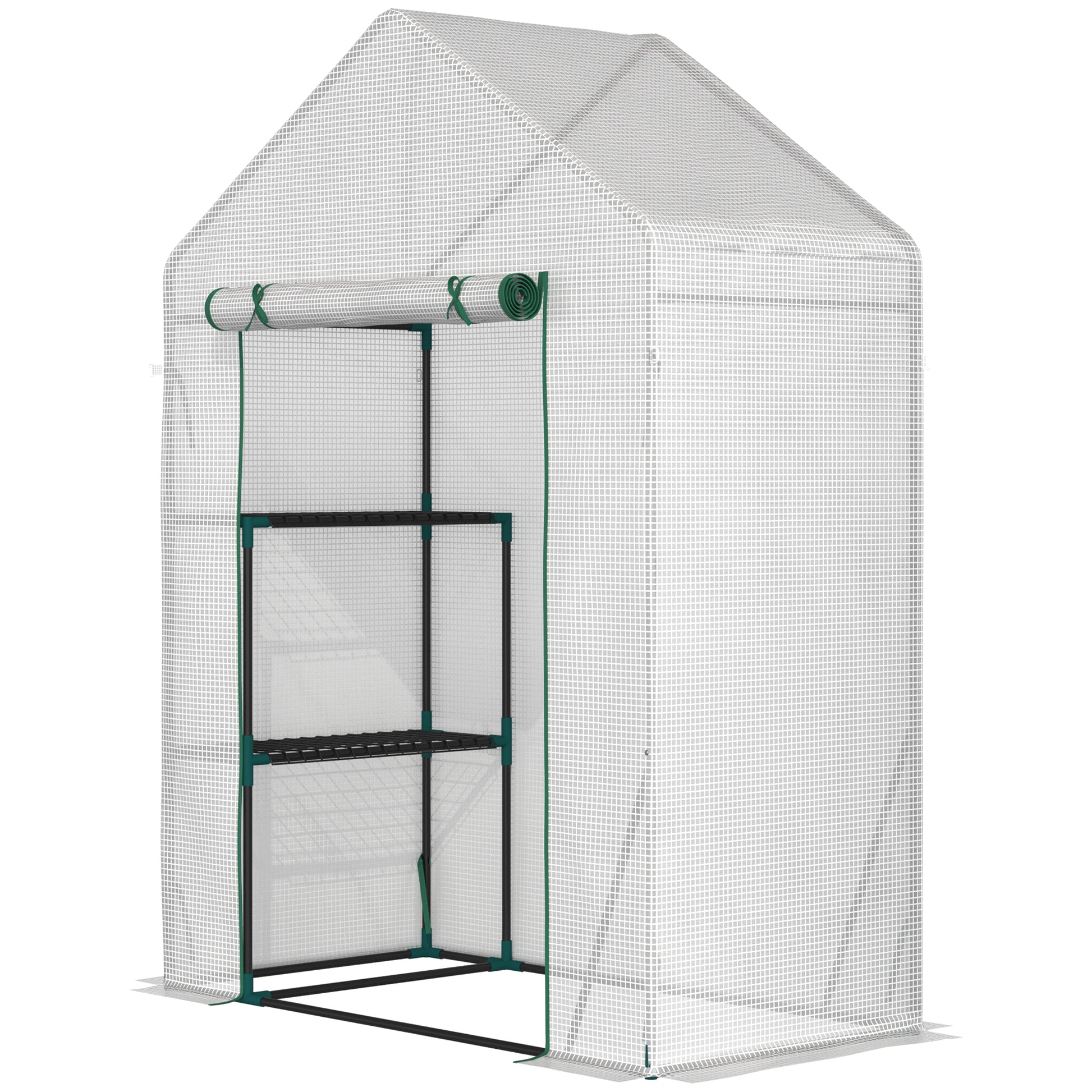 Serre de jardin Outsunny avec 4 étagères, porte à glissière, cadre en acier pour plantes et fleurs 143x73x195 cm Blanc