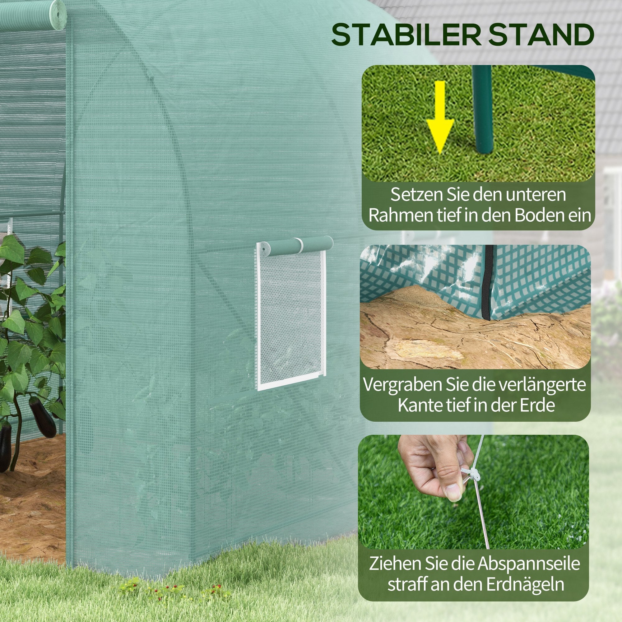 - - HAUTE QUALITÉ : Le cadre avec toit arrondi en tubes d'acier laqué et des entretoises diagonales supplémentaires, ainsi que la feuille PE résistante à l'eau, garantissent une stabilité idéale et une longue durée de vie.