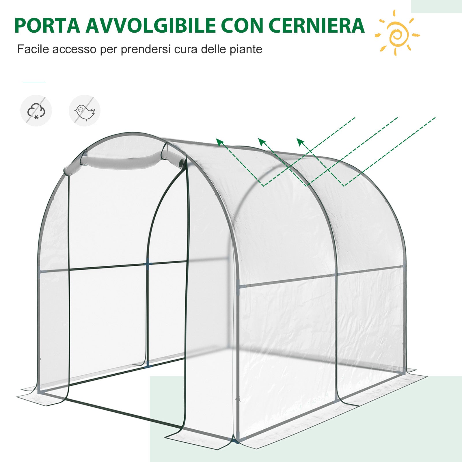 Serre Tunnel de Jardin Outsunny, Serre de Balcon pour Plantes et Légumes avec Couverture en PVC, Porte Roulante et Cadre en Acier, 2x2,5x2m