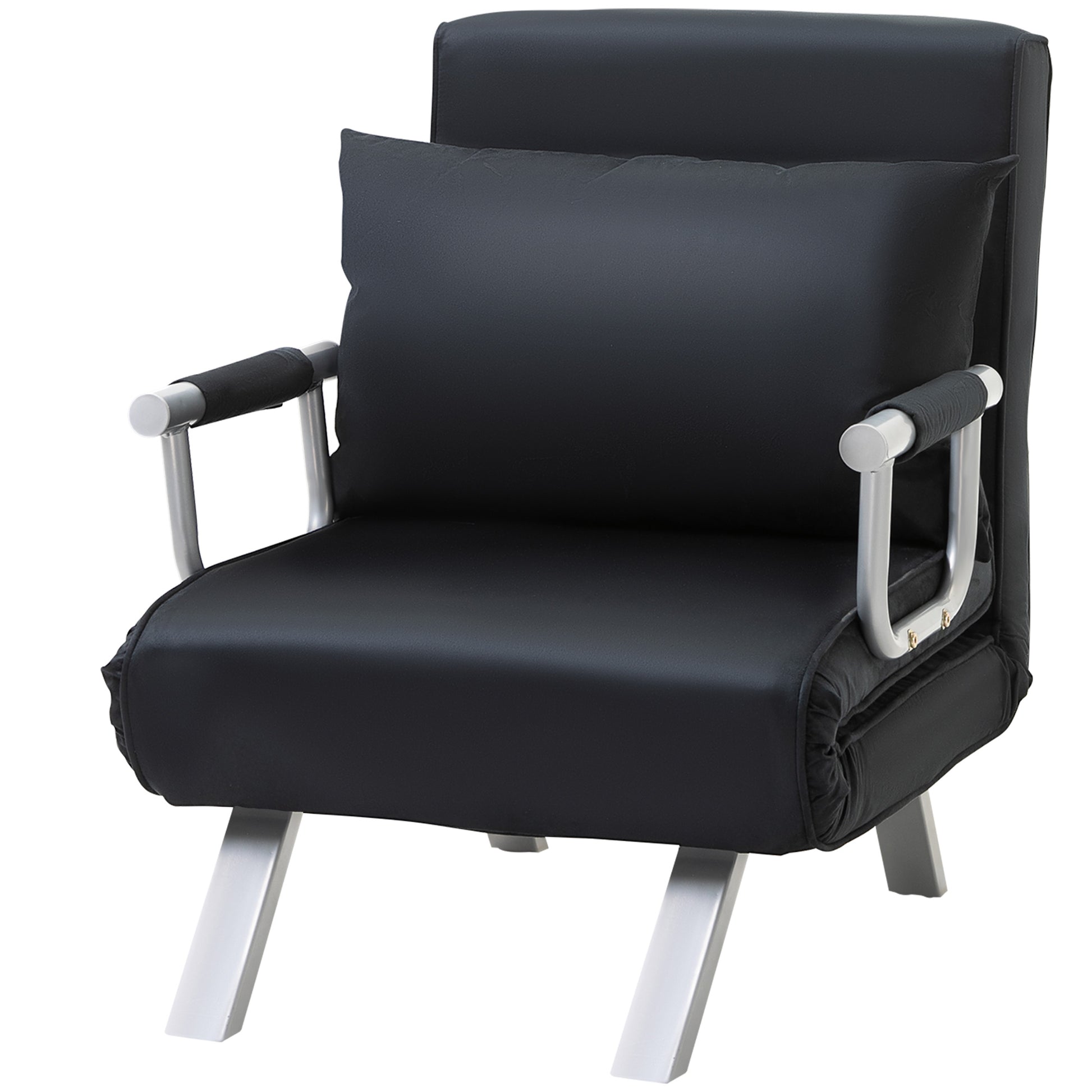 Sofa-lit HOMCOM avec dossier réglable, coussin décoratif, fonction canapé-lit, aspect velours, accoudoirs, lit d'appoint, chaise pliante pour salon, chambre, Noir