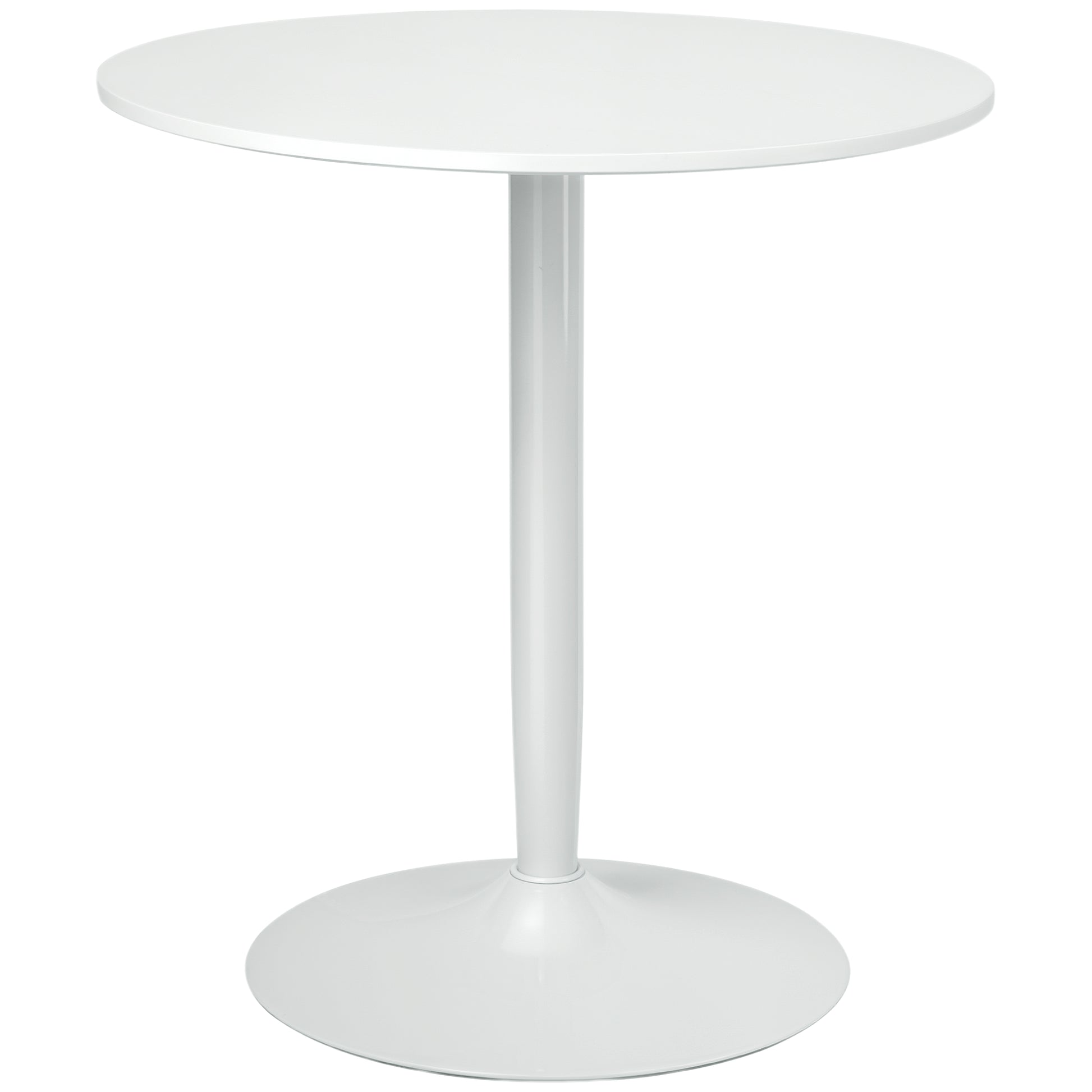 Table à Manger HOMCOM, Table de Cuisine Ronde, Table à Manger Moderne pour 2 Personnes, Table de Bar avec Pied en Acier, Repose-Pieds Antidérapant, Table Basse pour Salon, Ø70 x 75 cm, Blanc