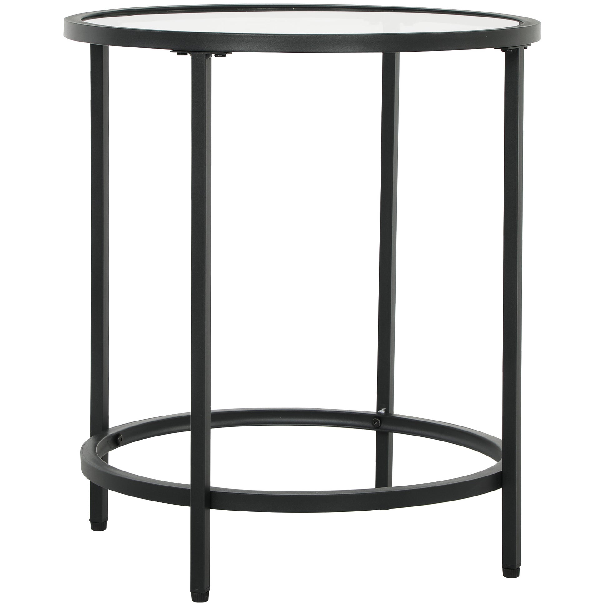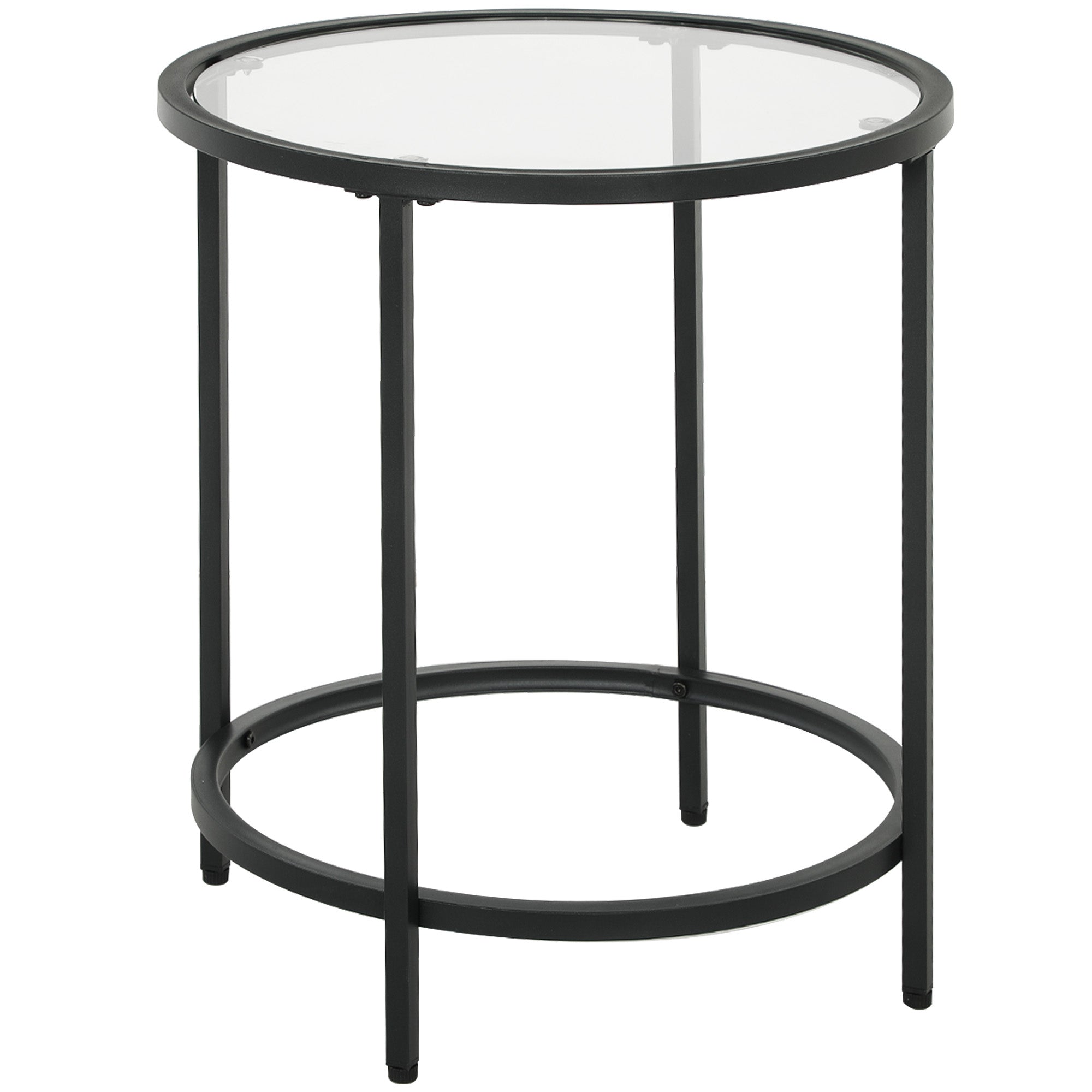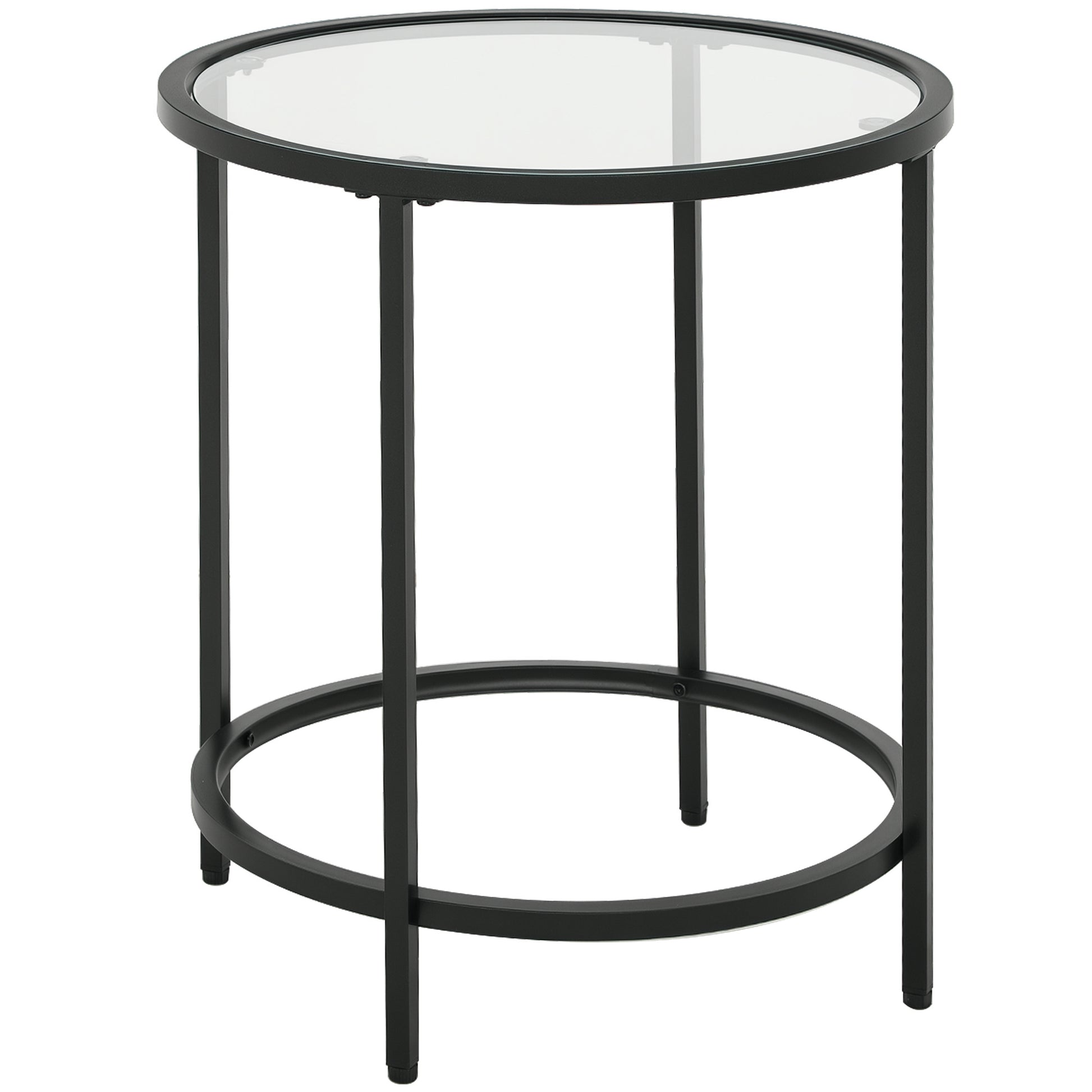 Table d'appoint HOMCOM Table ronde en verre avec plateau en verre, cadre en métal, table d'appoint, table de nuit pour salon, chambre, Noir, Ø48 x 54,7 cm