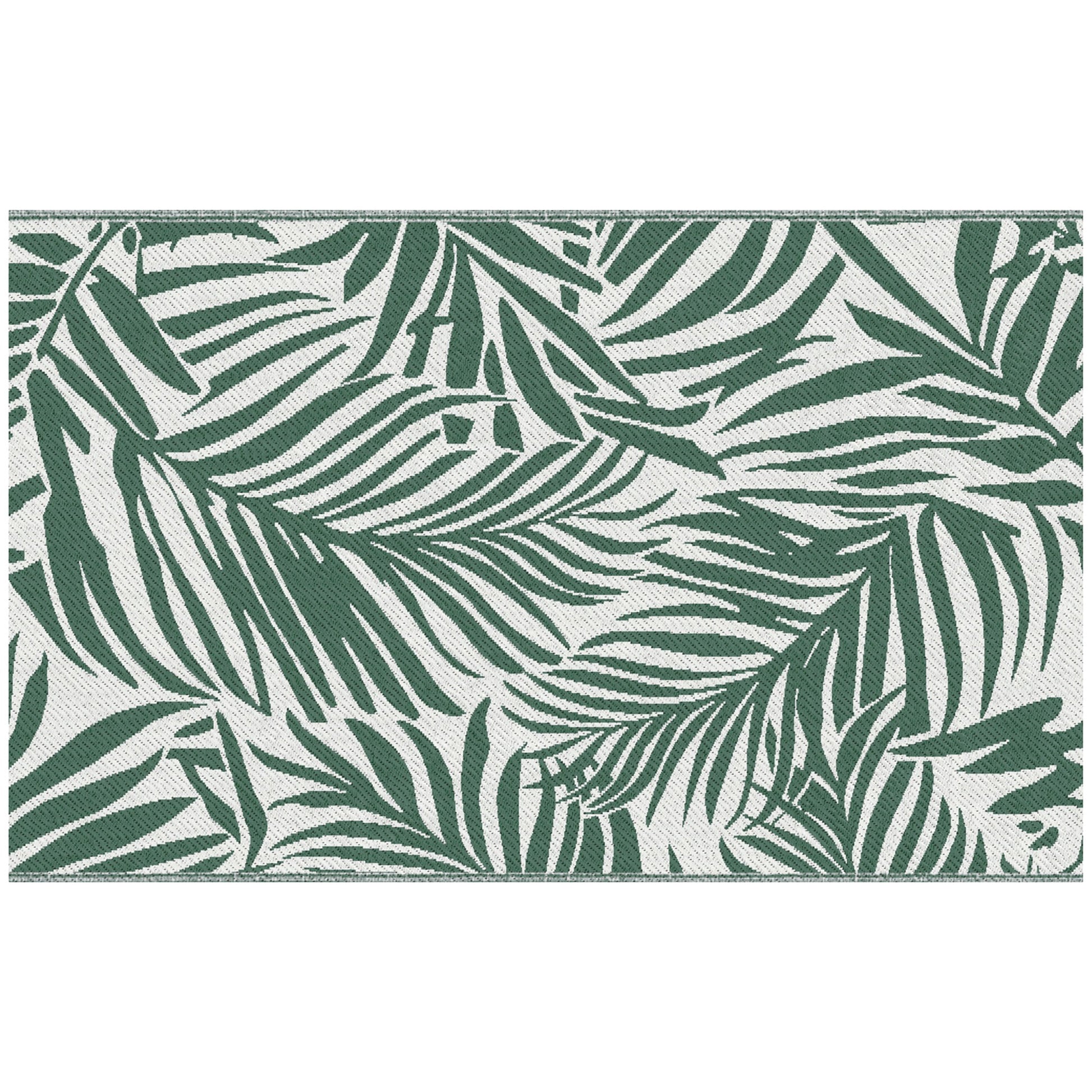 Tapis d'extérieur Outsunny 152x243 cm Tapis réversible avec motif de feuilles pour terrasse, balcon, patio, camping et plage Vert foncé et blanc
