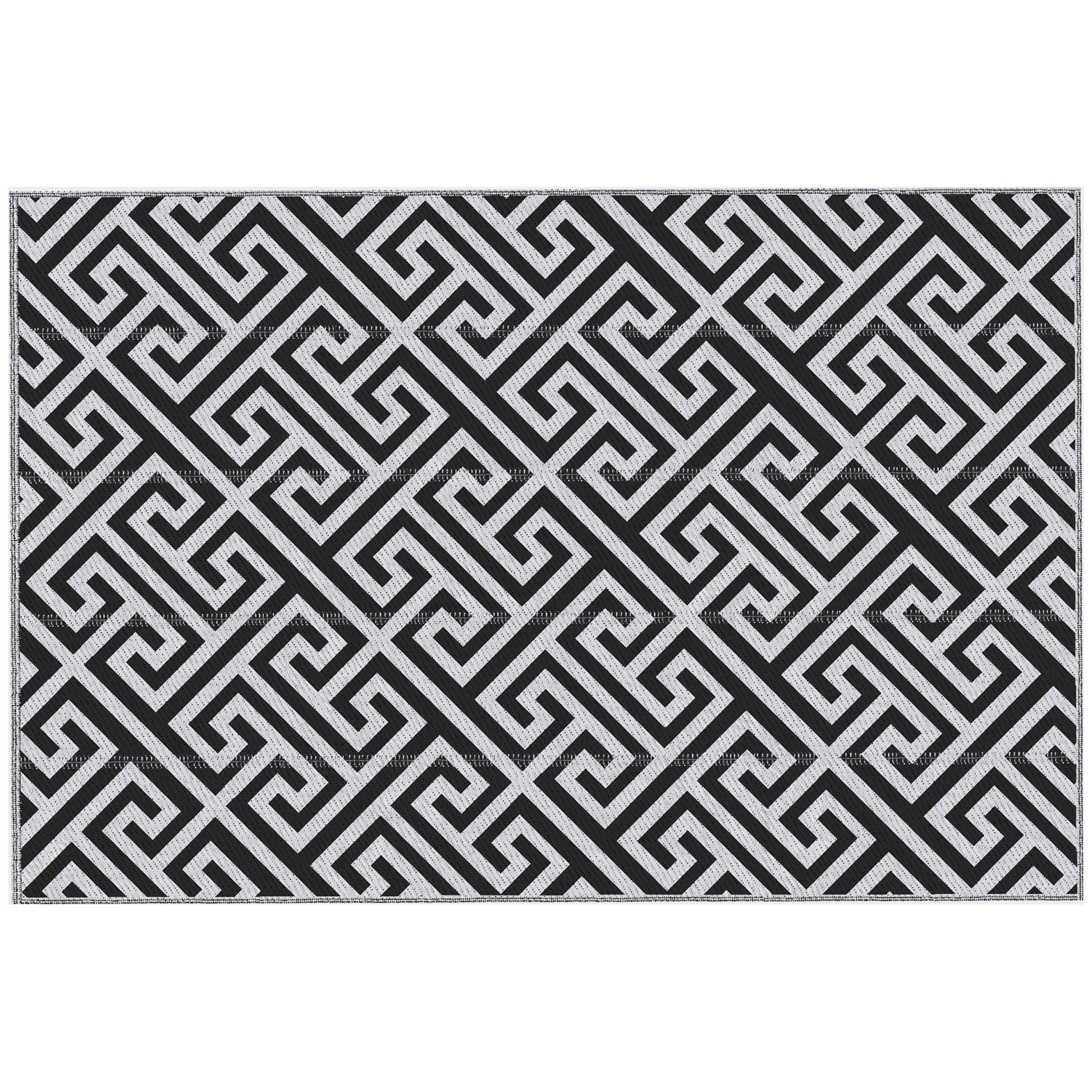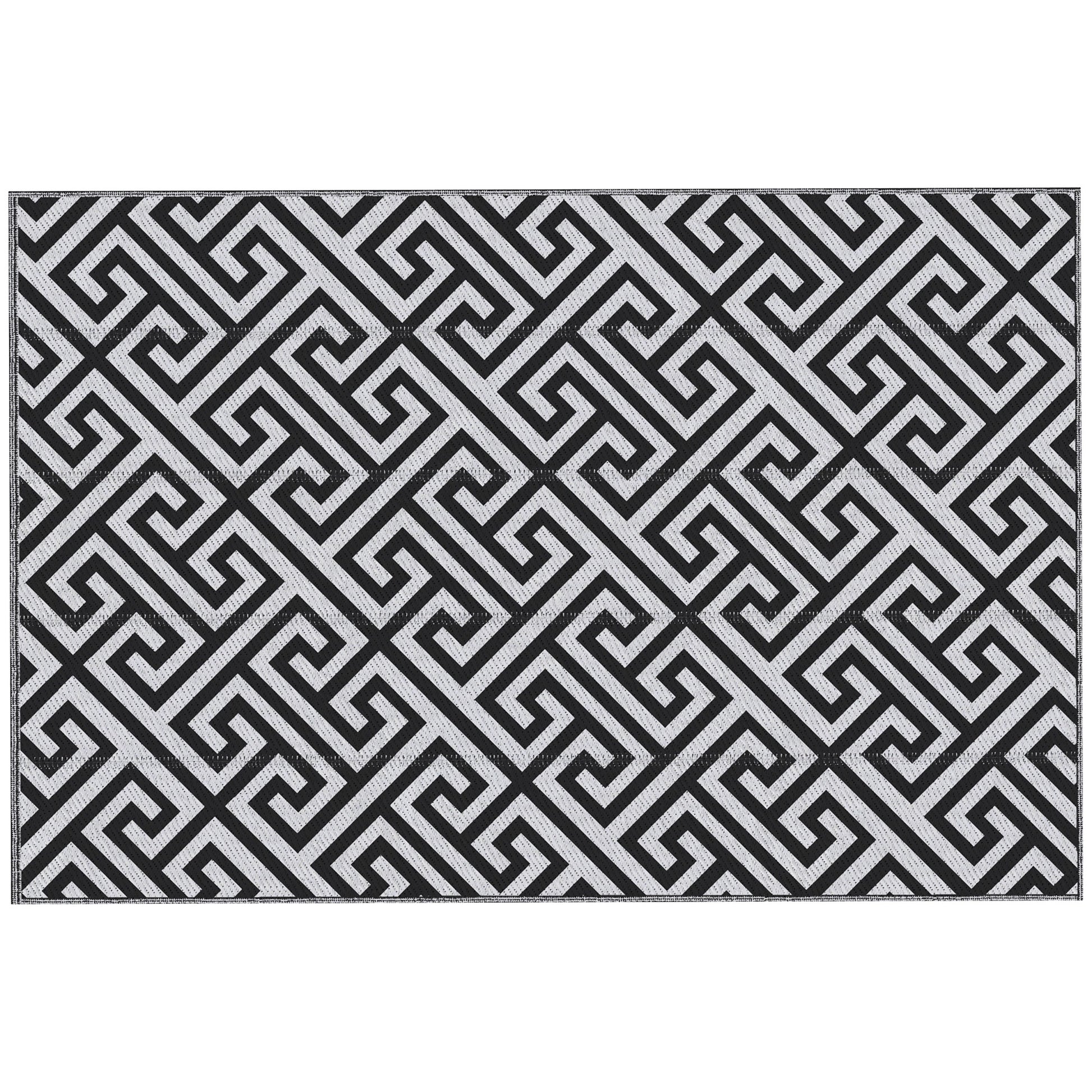 Tapis d'extérieur Outsunny 182x274 cm Tapis Réversible avec Motif Géométrique Imperméable pour Terrasse, Balcon, Patio, Camping, Plage Noir et Blanc