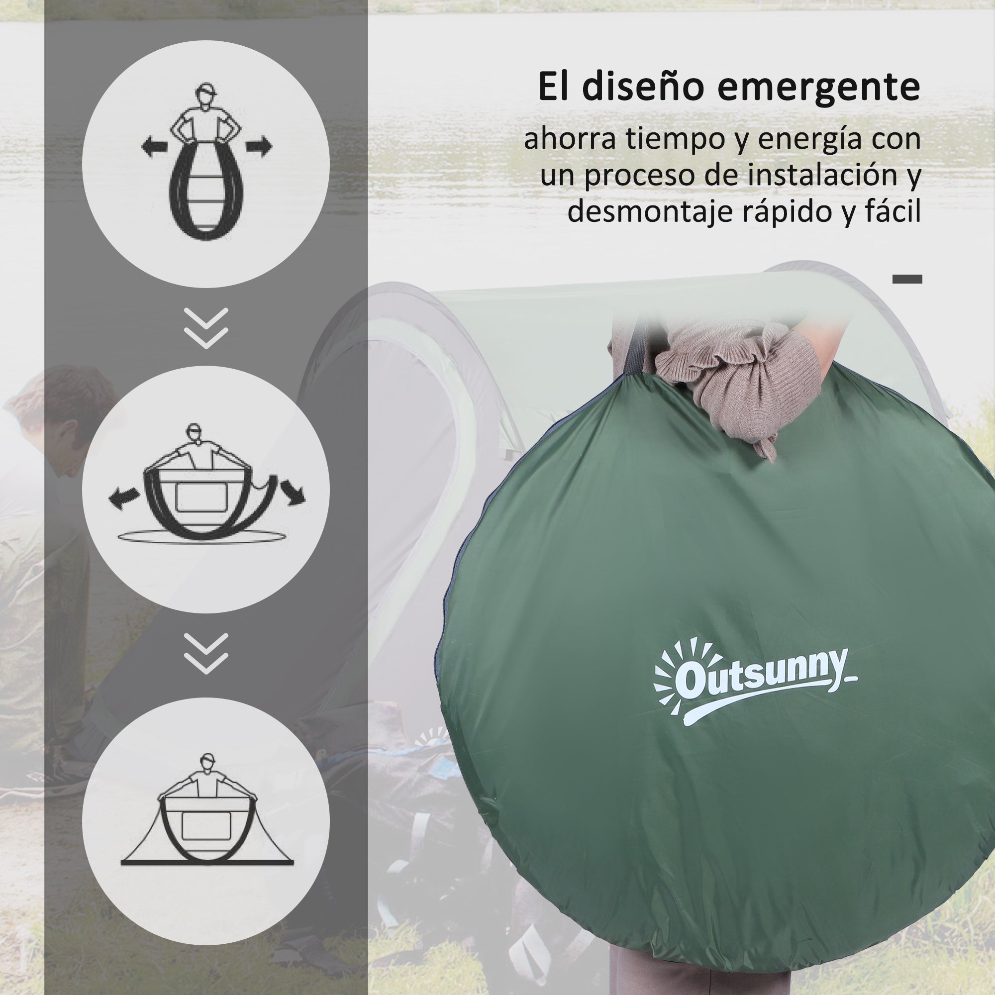 Tente de Camping Pop-up Outsunny pour 1-2 Personnes Imperméable 3000mm Anti-UV avec Poches et Sac de Transport pour Pêche Randonnée 250x150x100cm Vert
