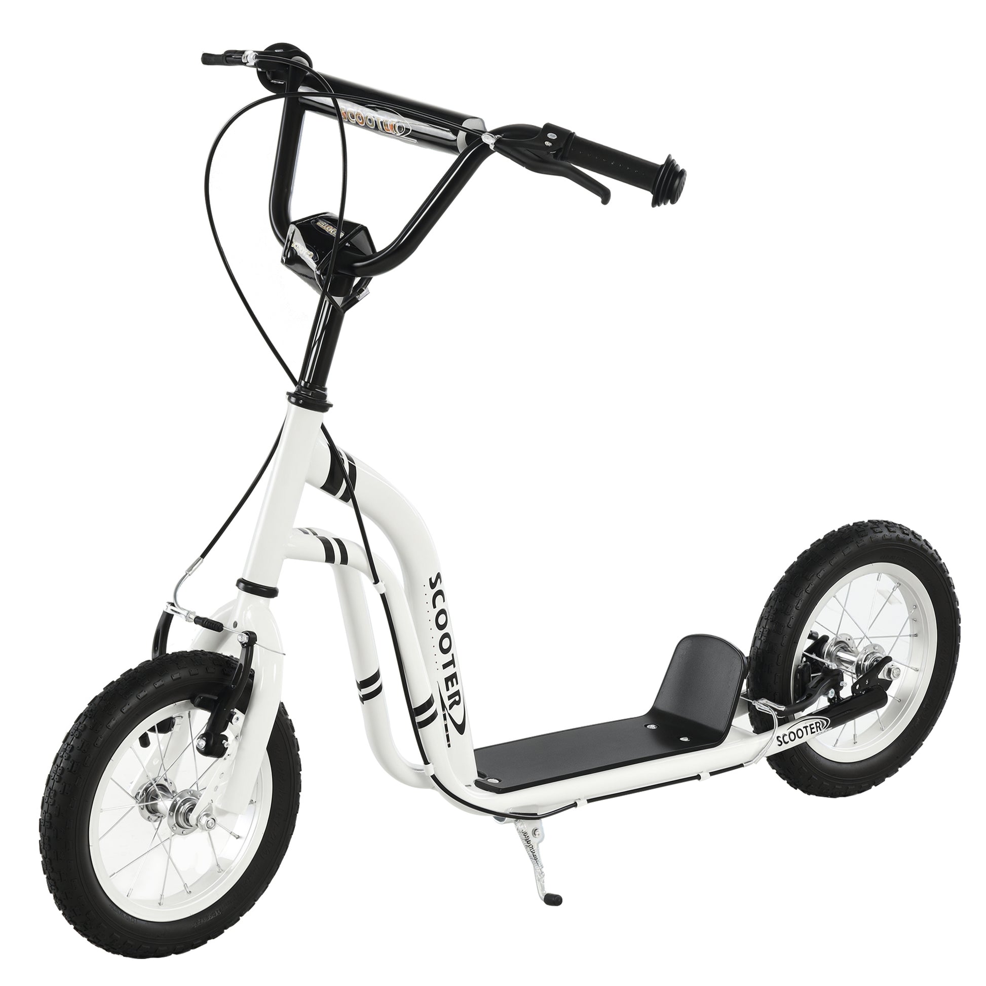 Trottinette HOMCOM pour enfants de plus de 5 ans, 2 roues gonflables en caoutchouc avec freins au guidon, pédale réglable antidérapante 120x58x85-95 cm Blanc