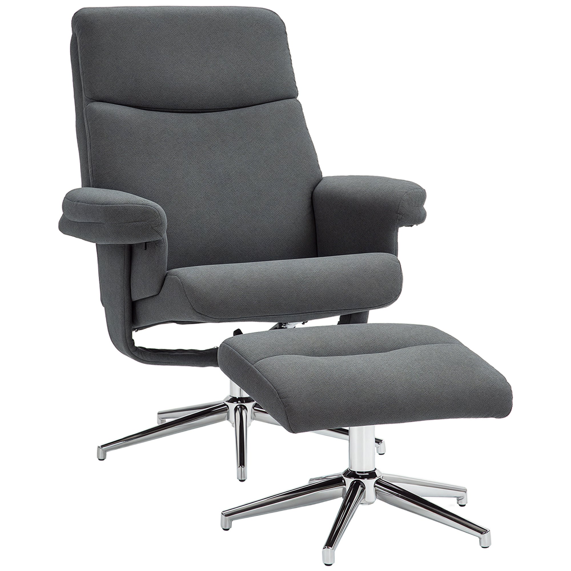 HOMCOM Naslonjač s Otomanom, Udoban TV Naslonjač s Funkcijom Oslanjanja, Lounge Stolica s Velur Izgledom, podržava do 150 kg, za Dnevnu Sobu, Spavaću Sobu, Tamno Siva