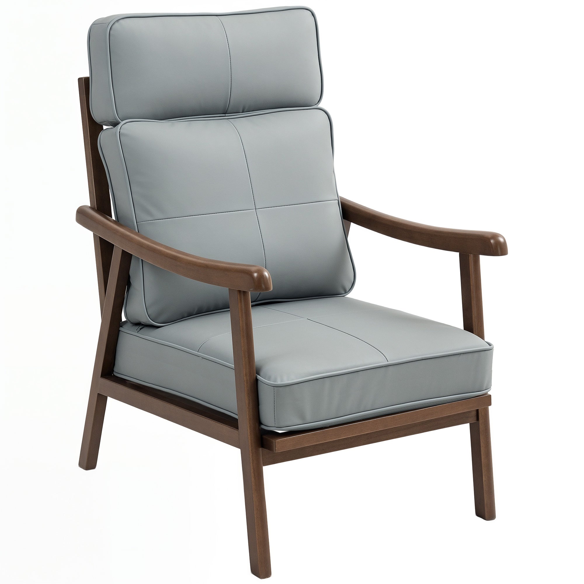 HOMCOM Udobna Stolica za Dnevni Boravak obložena PU sa drvenim okvirom, debelim jastučićima i visokim naslonom, nosivost 150 kg, stolica za čitanje za dnevni boravak i spavaću sobu u sivoj i orahovoj boji