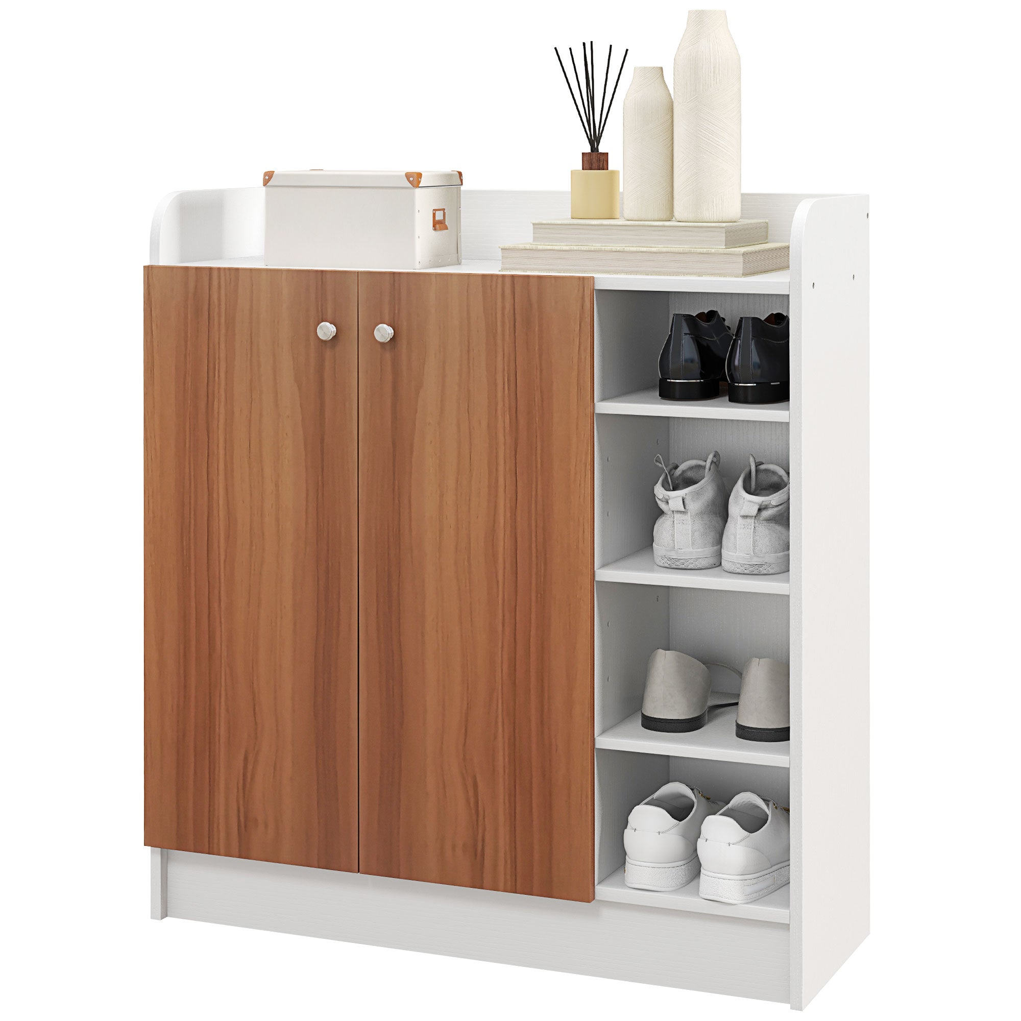 HOMCOM Moderna ormarić za cipele s 2 vrata i 4 police za 12 pari cipela, idealan za predsoblje, dnevni boravak, spavaću sobu 60x30x92 cm Bijela