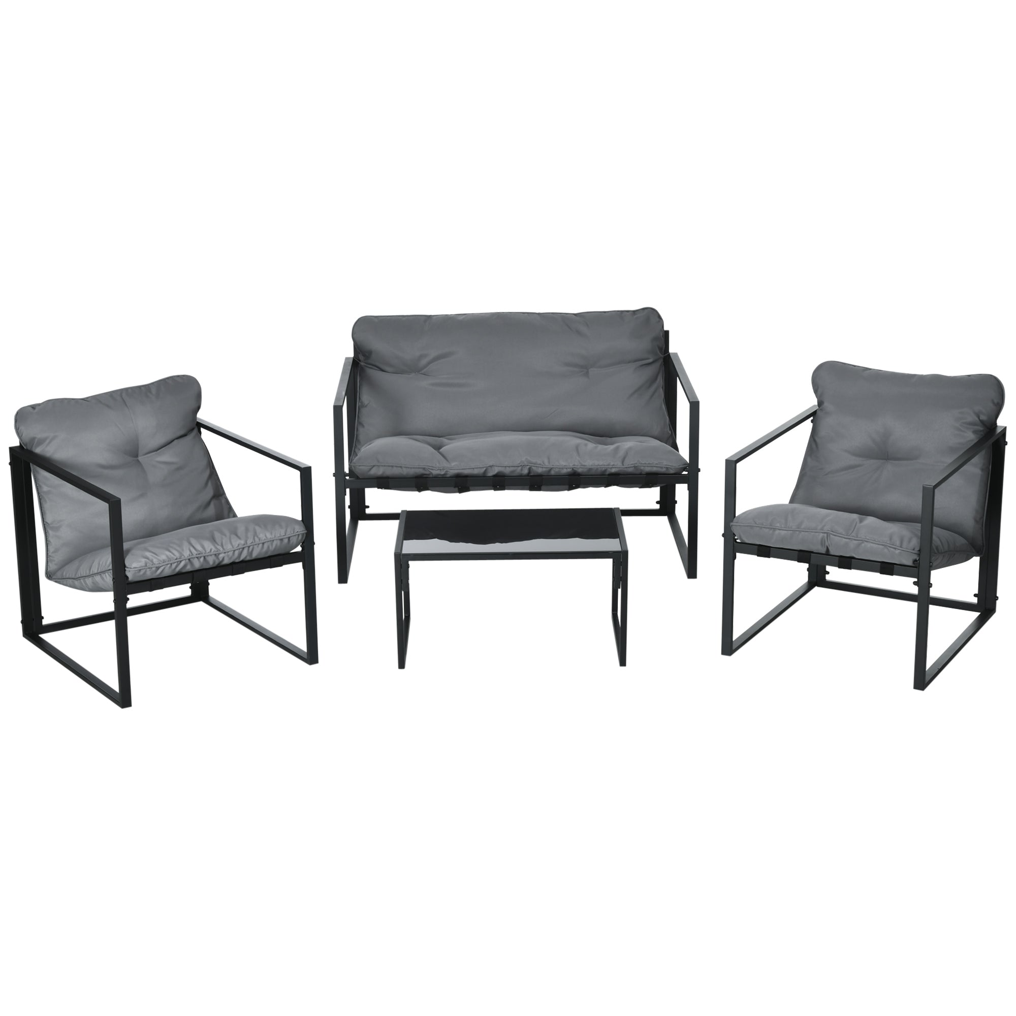 Outsunny Set Vrtne Garniture za 4 Osobe - Čelični Vodootporni Set za Balkonsku Garnituru s Dvosjedom, Foteljom i Staklenim Stolom