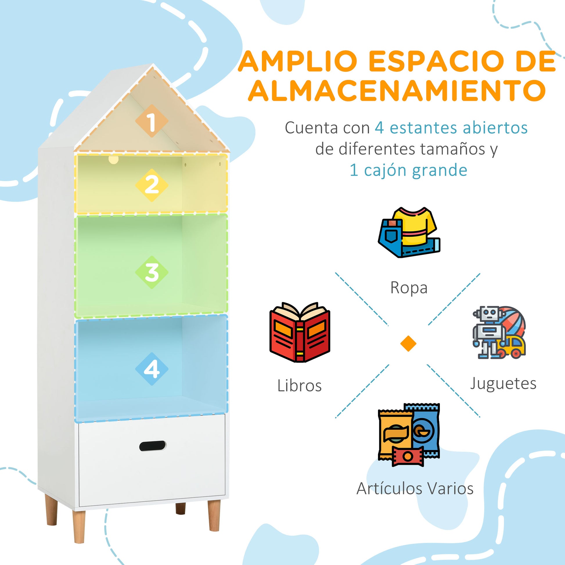 HOMCOM Drvena Polica za Knjige za Djecu s 4 Police i 1 Ladicom 50x30x142 cm Bijela