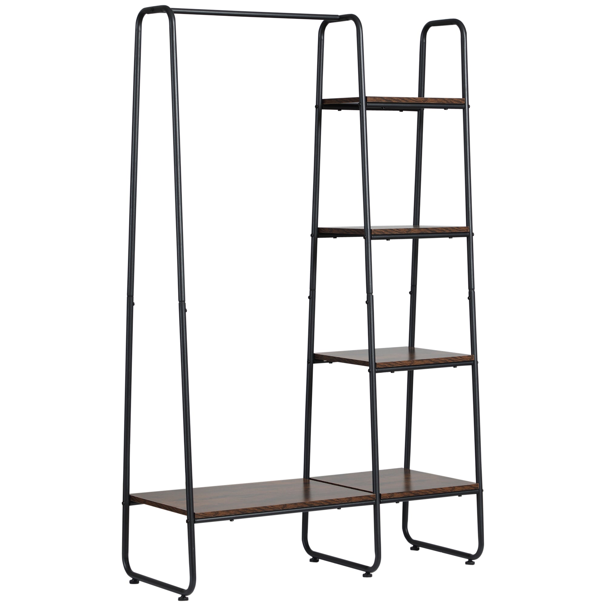 HOMCOM Drveni Stalak za Odjeću s 5 Polica za Pohranu i Prikaz za Spavaću Sobu, Dnevni Boravak i Ulaz, Industrijski Stil 101x39x160 cm