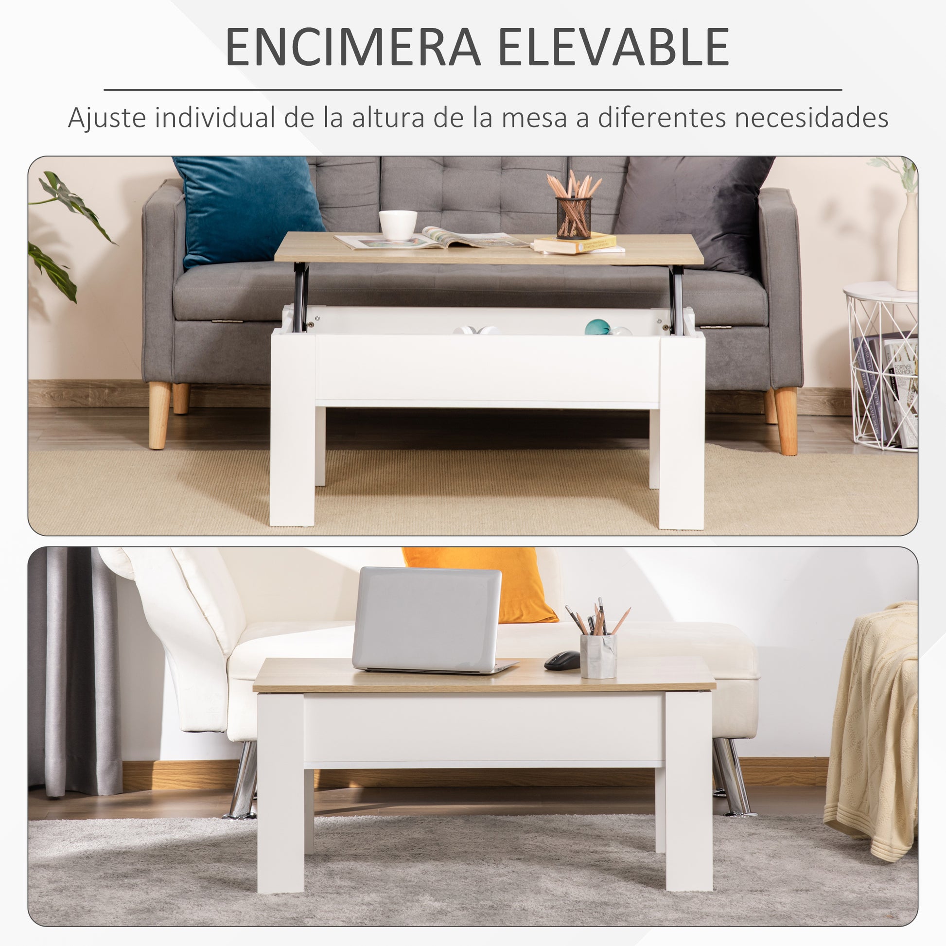 HomCom Kava stol s podiznim vrhom i skrivenim prostorom za pohranu 100x50x45-58.5 cm Bijela i prirodna