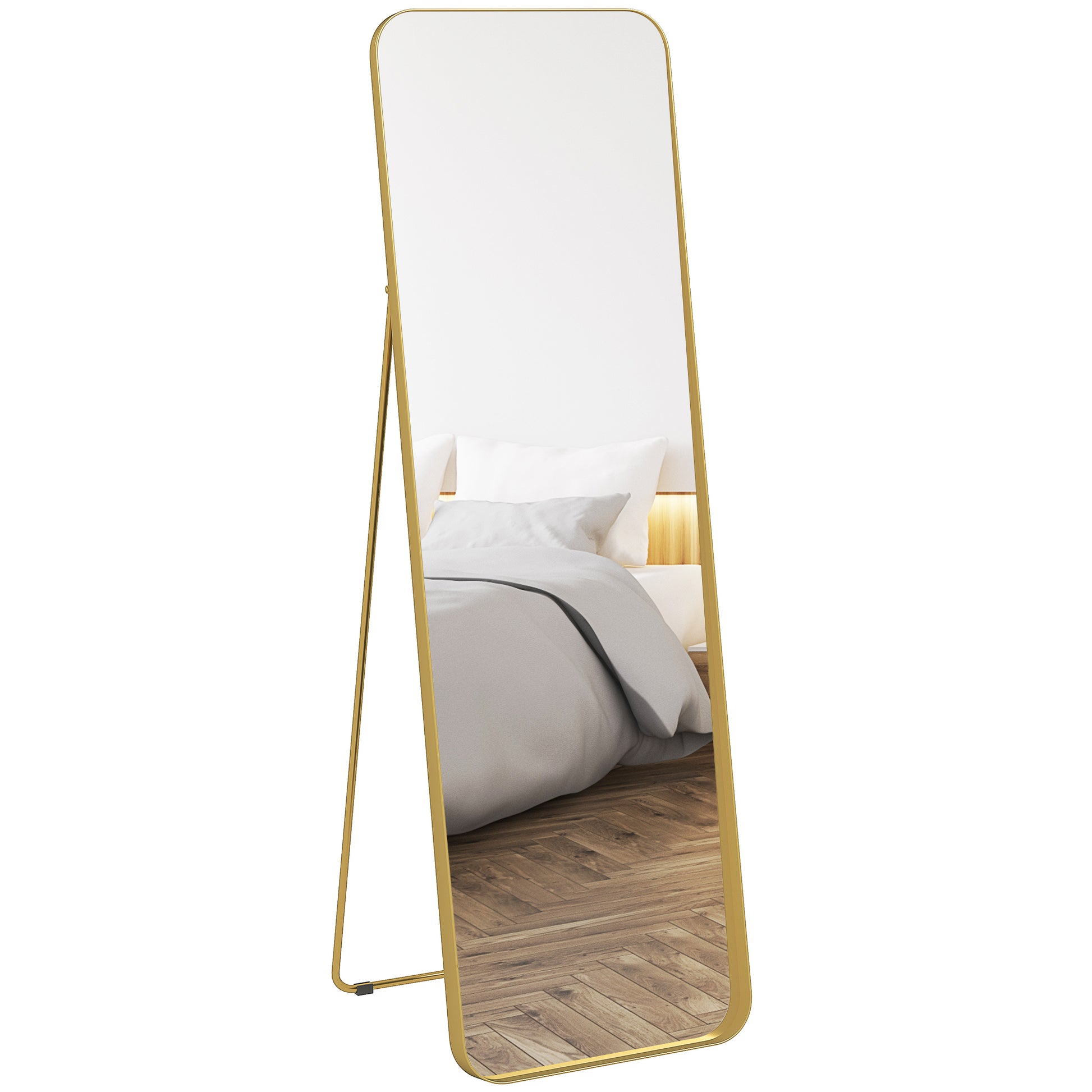 HOMCOM Ogledalo za cijelo tijelo 160 x 50 cm Snažno stojeće ogledalo s metalnim okvirom i staklom otpornim na razbijanje, podno ogledalo za stajanje, naslon, ogledalo za dnevni boravak, spavaću sobu, hodnik, Zlatna