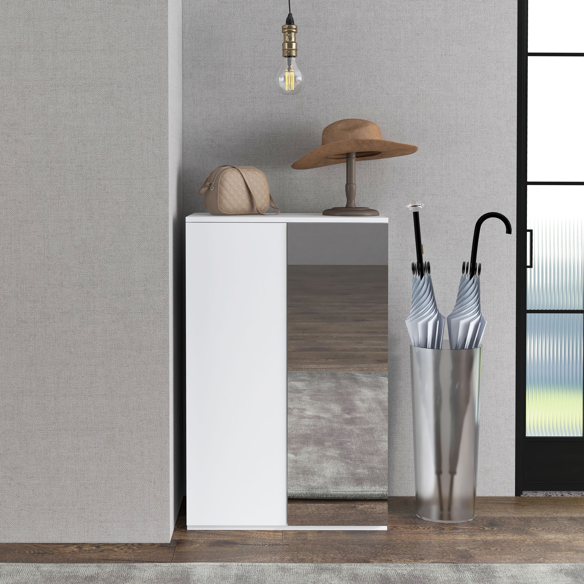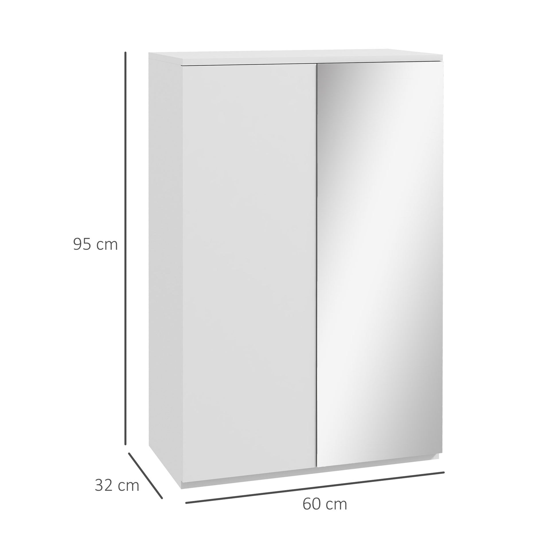 HOMCOM Ormar za Cipele s Ogledalom za 18 Parova Cipela s 5 Podesivih Polica za Ulaz 60x32x95 cm Bijela