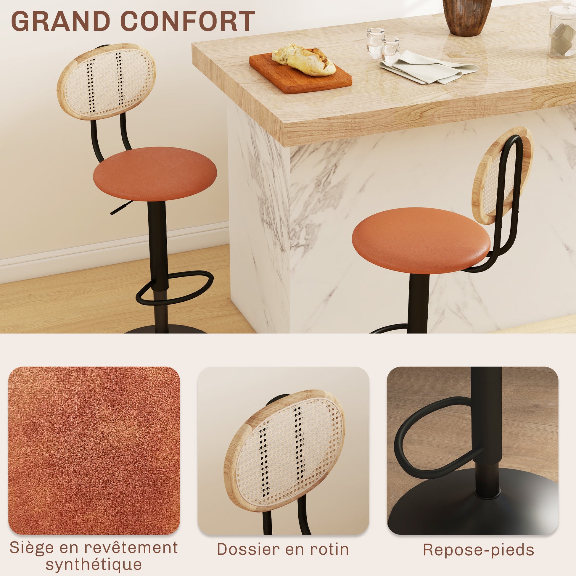 - - 360 STUPNJA OKRETANJA S NASLONOM ZA NOGE: Iskusite neusporedivu udobnost s našim okretljivim kuhinjskim stolicama. Potpuno 360-stupanjsko okretanje omogućava vam angažman u razgovorima u svim smjerovima ili potpuno uživanje u slobodi kretanja na vašem pultu. Njihov integrirani naslon i naslon za noge poboljšavaju udobnost i promoviraju bolju posturu, smanjujući umor tijekom produženog korištenja.