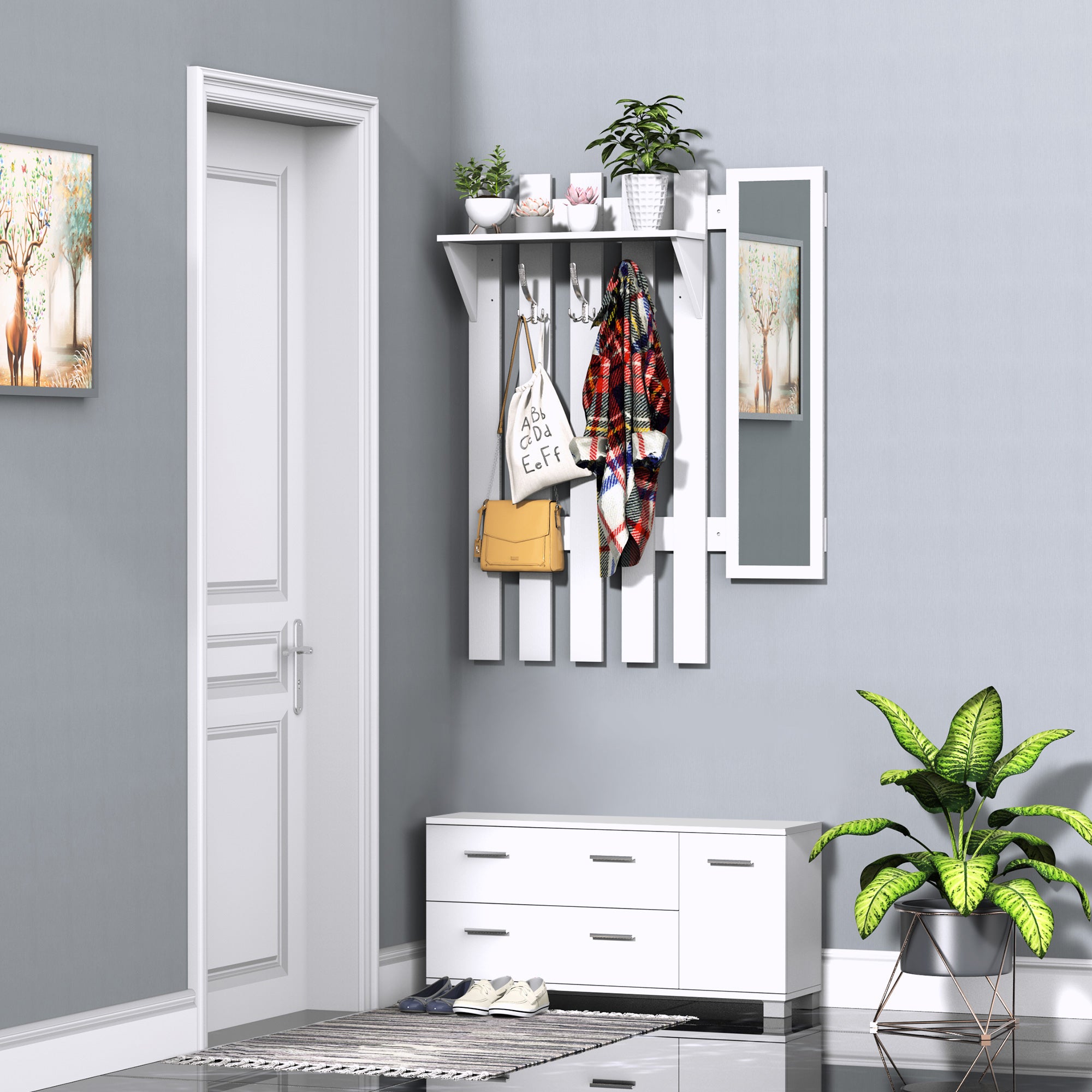HOMCOM Set za Predsoblje s Ogledalom, Kuka i Ormarićem za Cipele - Namještaj za Predsoblje s 3 Kuke, Policom i 2 Ladice