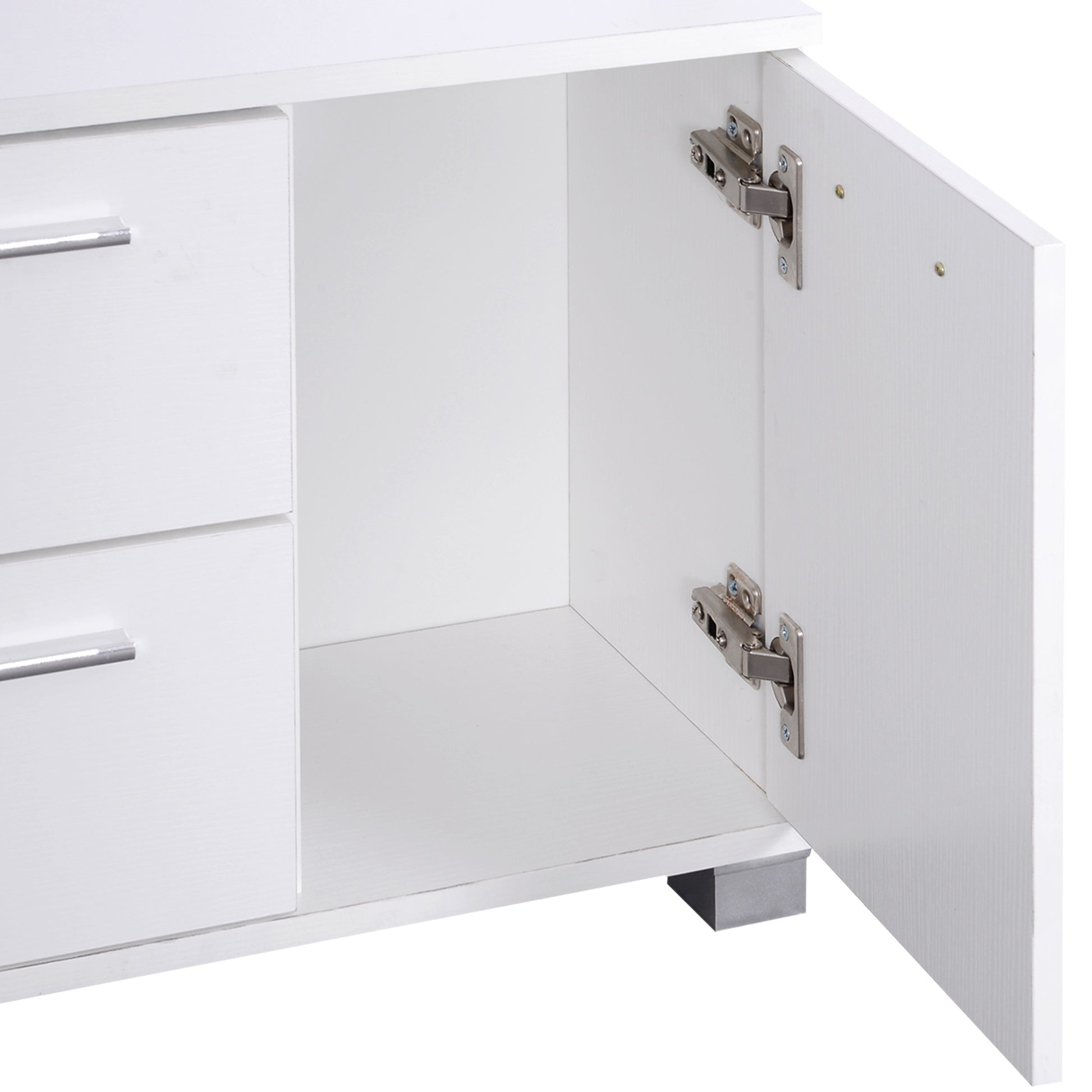 - - ČVRSTA STRUKTURA: Izrađen od visokokvalitetnih melamin ploča i završene u bijeloj boji, ovaj namještaj nudi veću izdržljivost i otpornost. Stabilne noge i čvrste metalne kuke osiguravaju čvrstoću i funkcionalnost