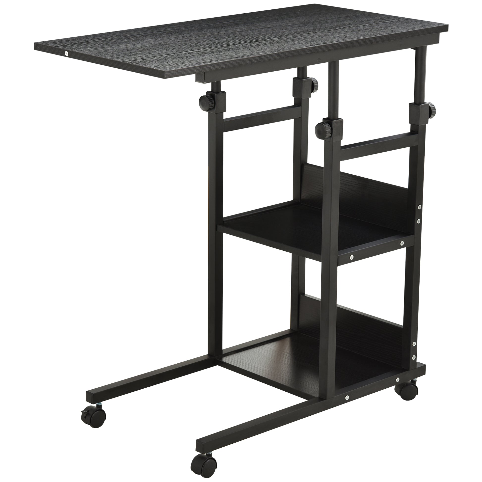 HOMCOM Stolić s kotačima 80x40 cm C-oblik s podesivom visinom 3 razine od 72-82 cm Metalni okvir za dnevni boravak i kuhinju Crna