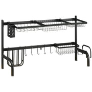 HOMCOM Sušilica za suđe, 2-nivenska sušilica za suđe, sušilica dimenzija 51-93 cm s kukama, odvod za kuhinjski sudoper, čelik, crna