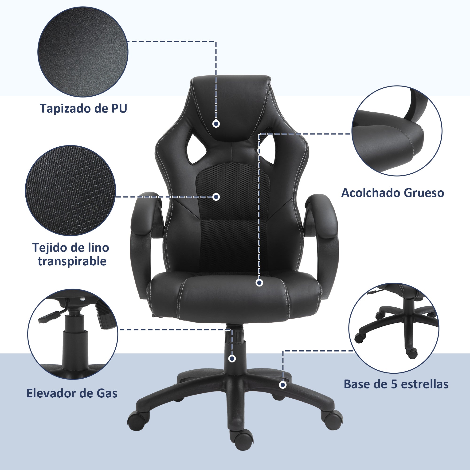 HOMCOM Uredska stolica sa visinom koja se podešava i visokim naslonom, presvučena PU kožom i prozračnom mrežicom 71x61x108-118 cm Crna