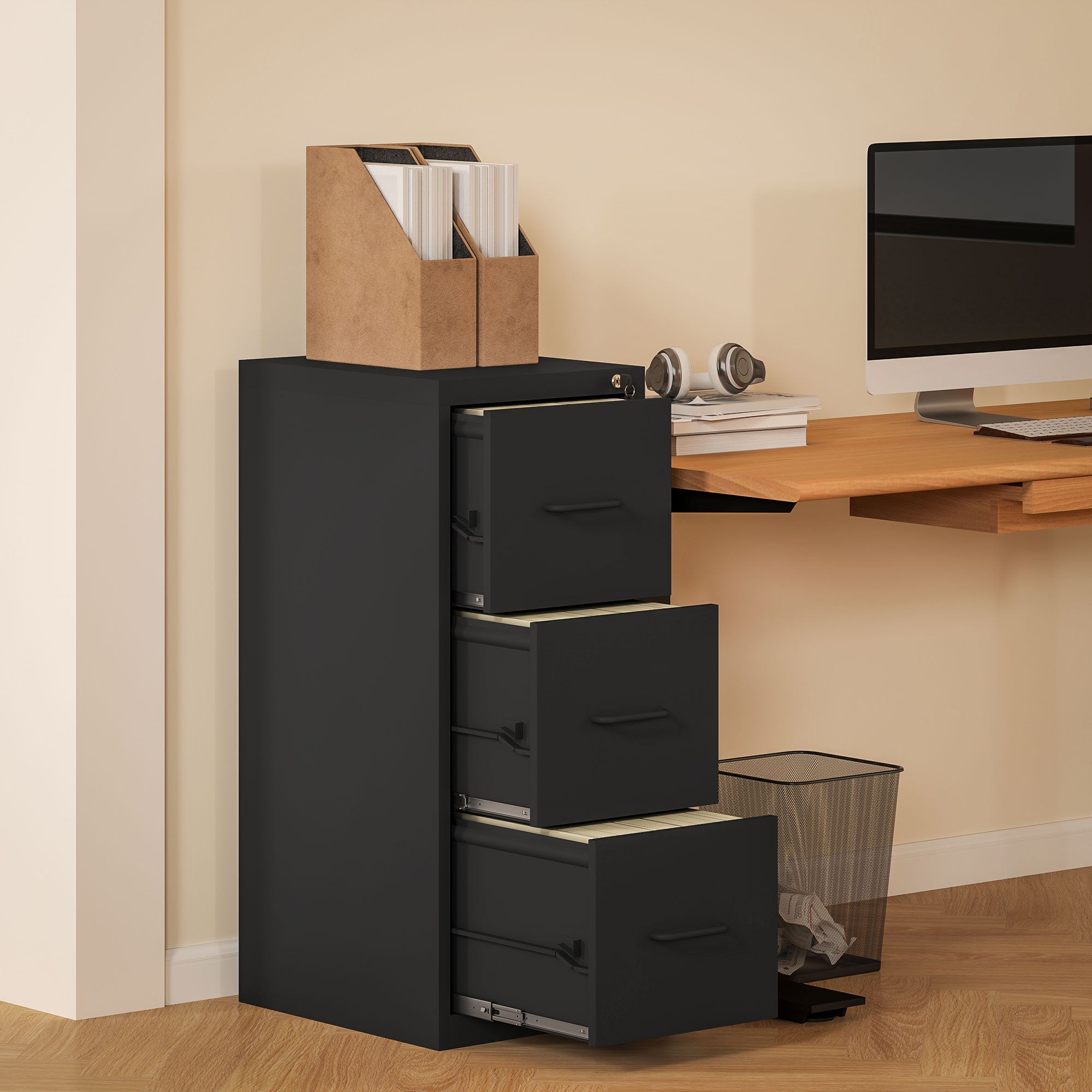 HOMCOM Uredski ormar s 3 ladice i podešivom šipkom, čelični uredski ormar za dokumente, idealan za dom, ured i studij, 36.5x46.2x99 cm, crna