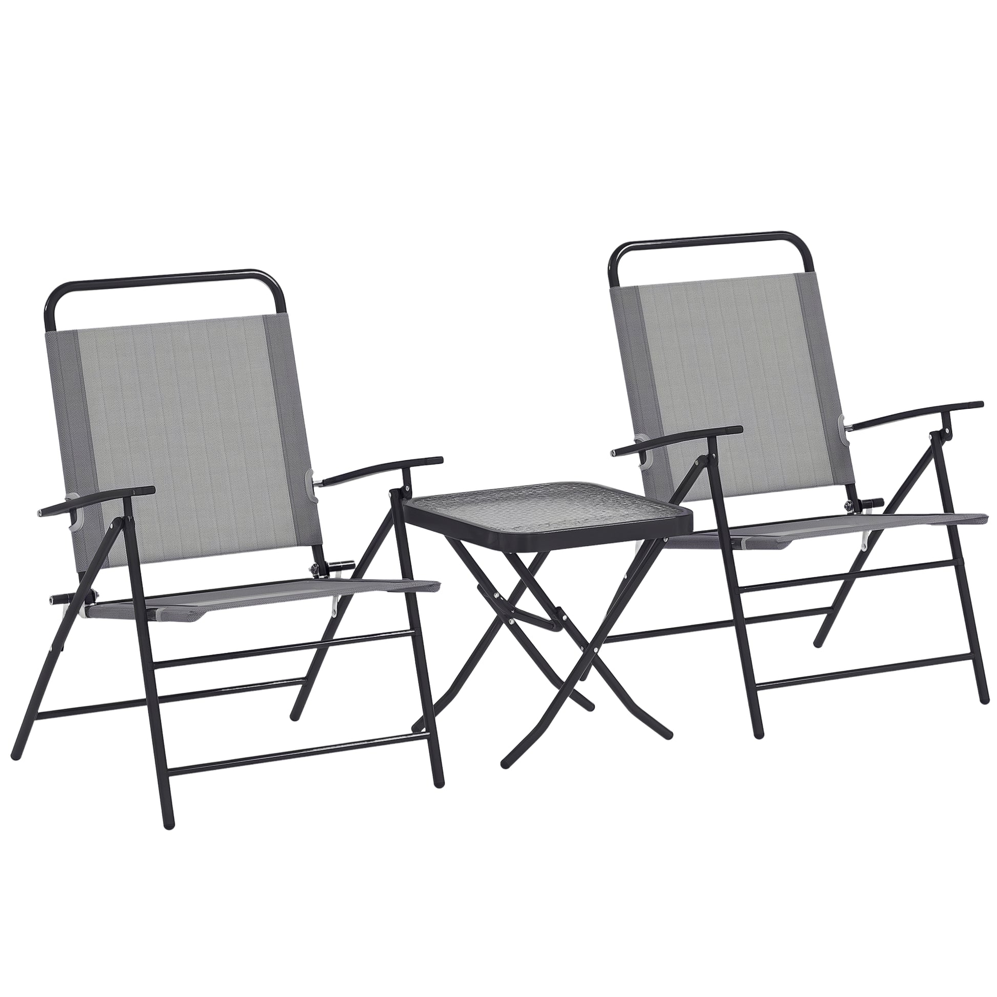 Outsunny 3-dijelni set namještaja za vanjsku terasu - sklopivi stol i stolice s podesivim naslonima, staklenom površinom i čeličnim okvirom, siva