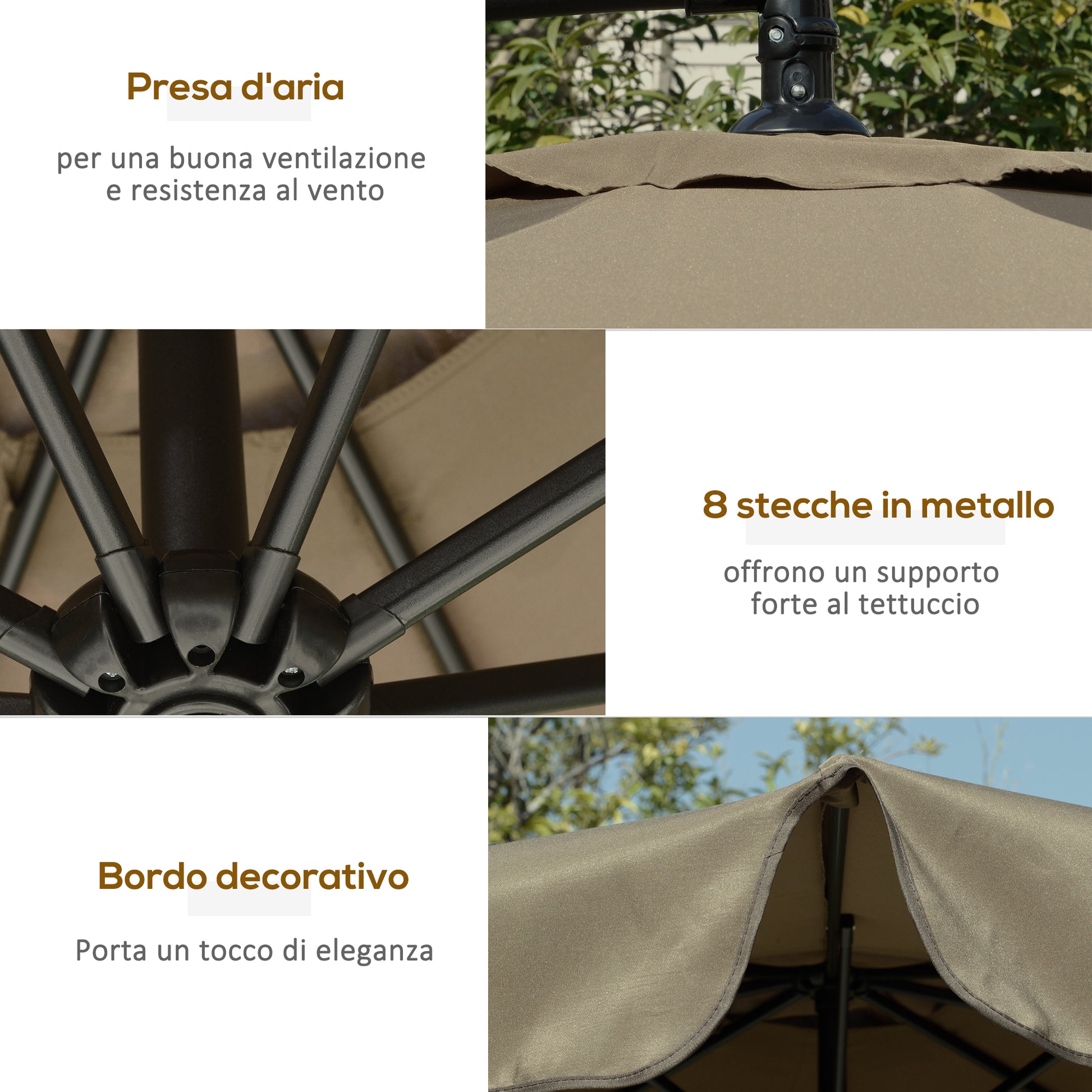 - - PODESIV KUT: Vrtna sjenica je podešena u raznim pozicijama zahvaljujući ugrađenom ručnom mehanizmu, pružajući hlad tijekom cijelog dana