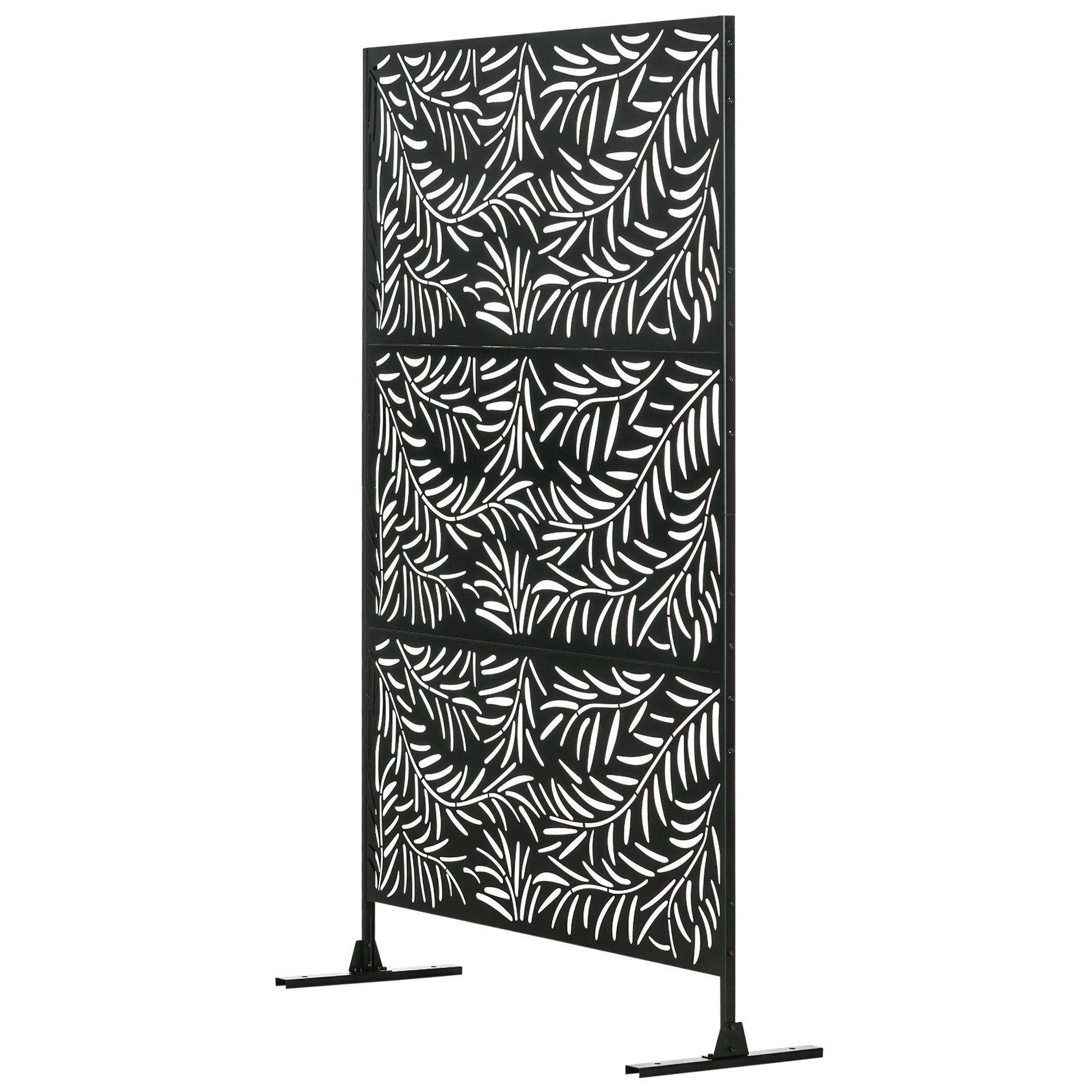 Outsunny Pregrada za Prostor 3-Panela 122 x 198 cm Privatna Zaslon s Postoljem i Uzorkom Vrbe za Vrt, Patio, Čelik, Crna
