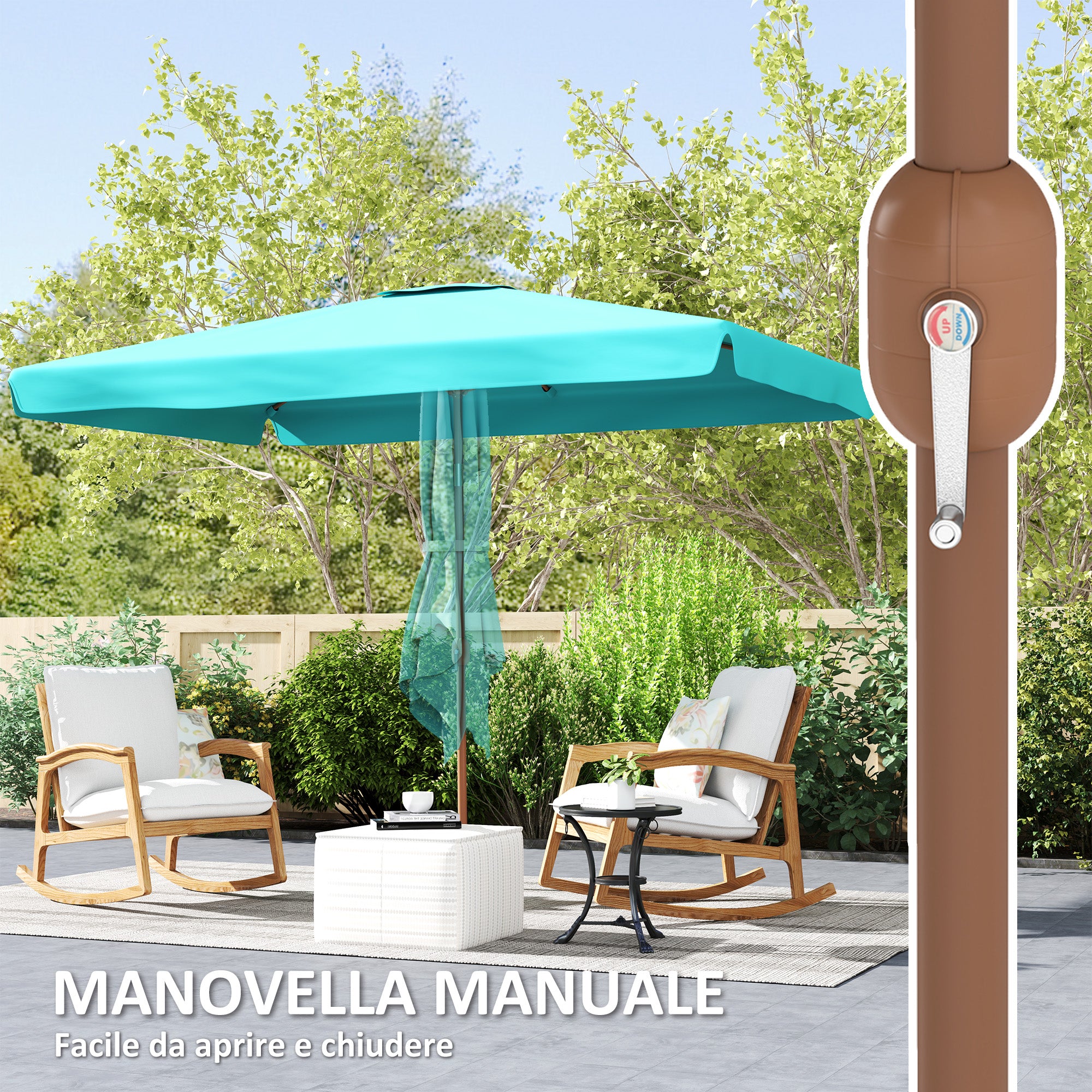 Outsunny Tirkizni vrtni kišobran 2x3 m s nagibom, ručkom za zakretanje, ventilacijom i naboranim rubom, pravokutni vanjski kišobran s UV zaštitom 50+ od aluminija i poliestera 180 g/㎡