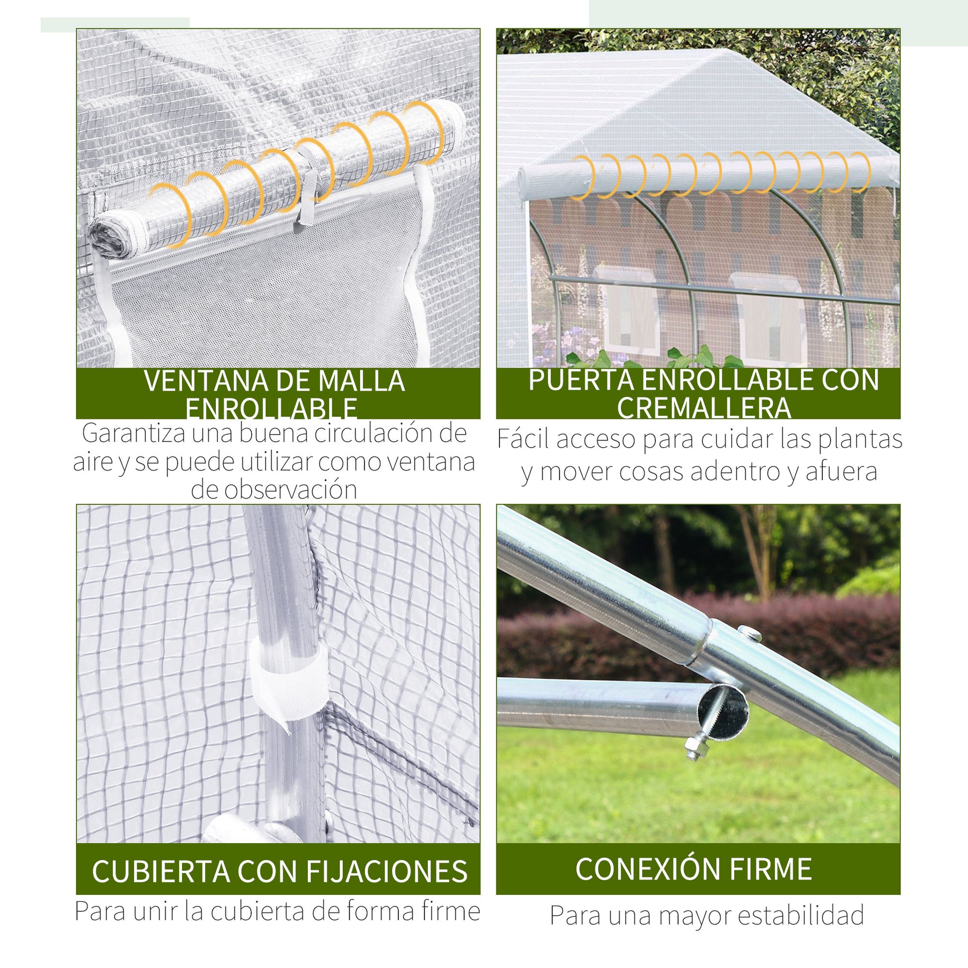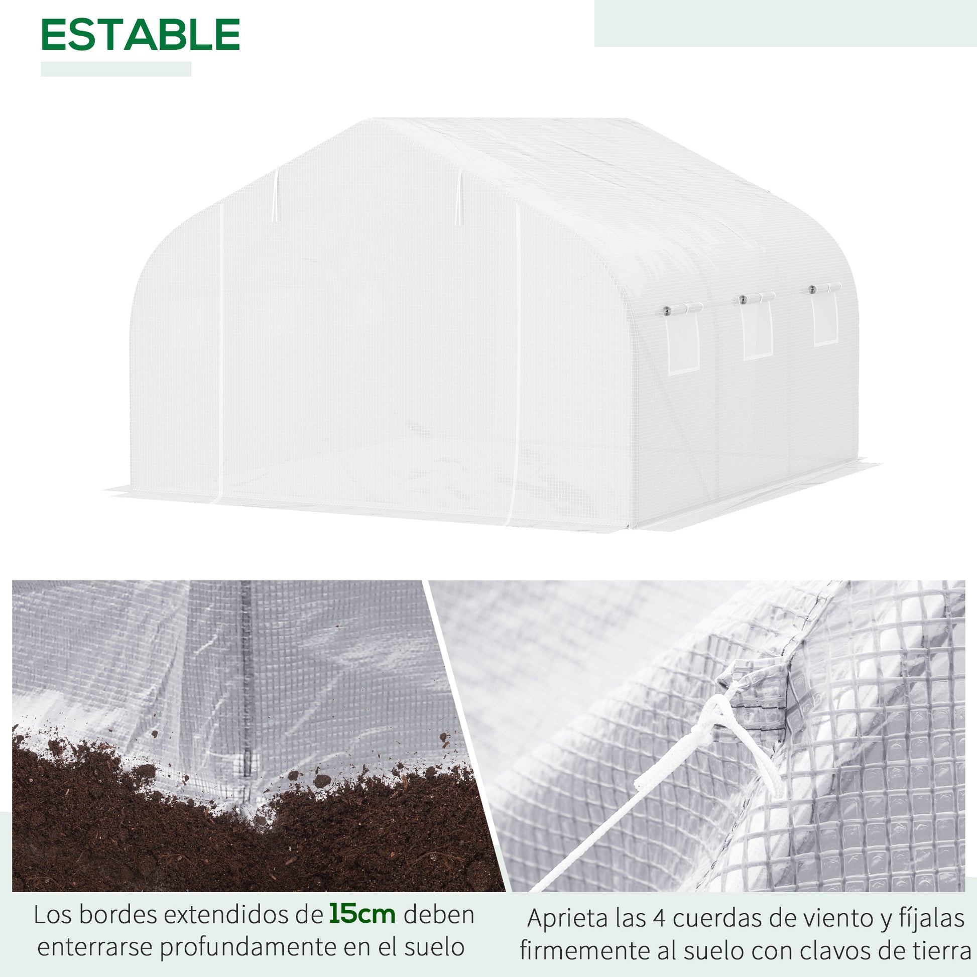Outsunny Tunska Staklenik 3.5x3x2 m Vrtni Staklenik s 6 Prozora i PE Pokrovom od Polietilena 140 g/m² za Biljke Cvijeće Povrće