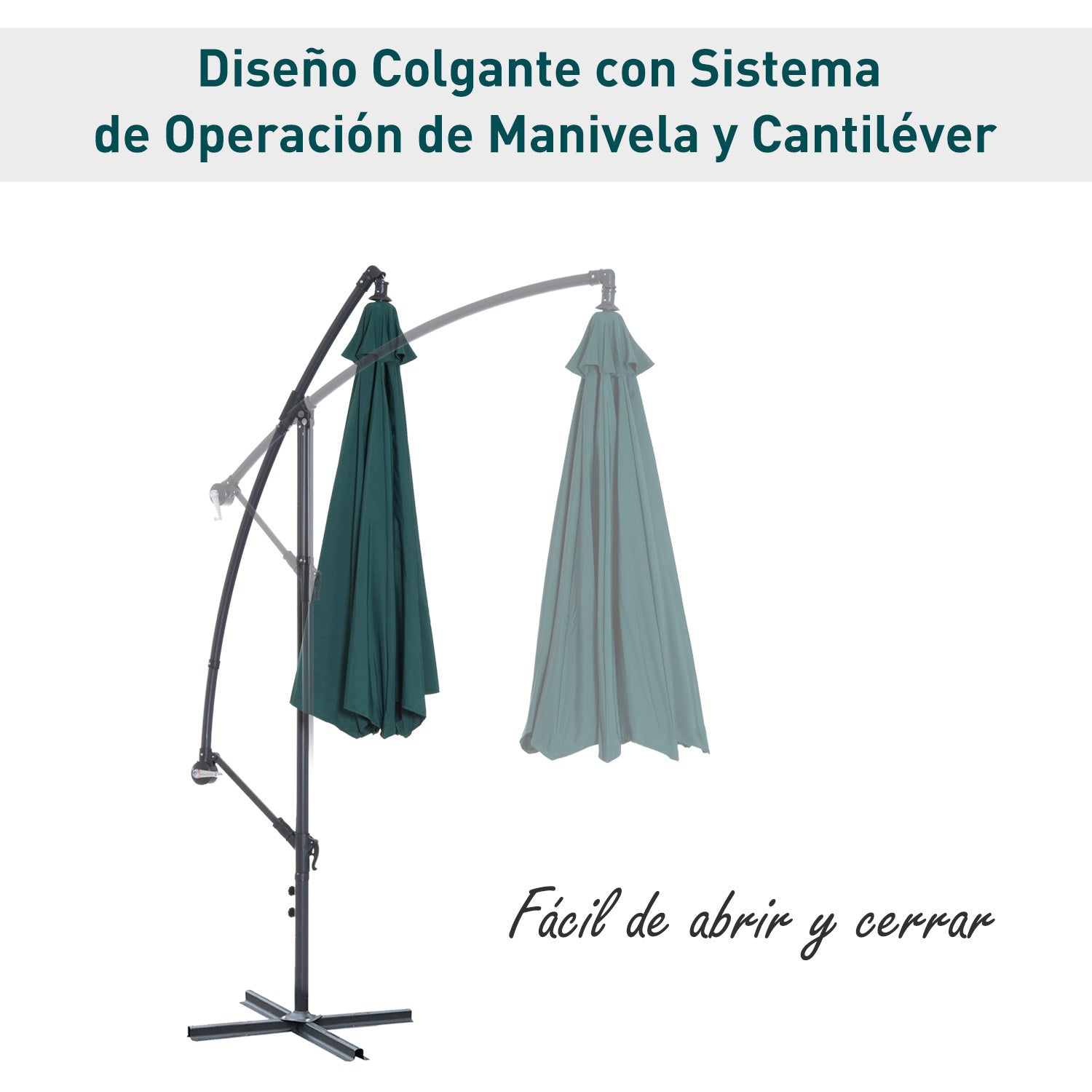 - - OTVARANJE I ZATVARANJE RUČICOM: Otvorite i zatvorite vrtni kišobran u nekoliko sekundi zahvaljujući ugrađenoj ručici na stupu