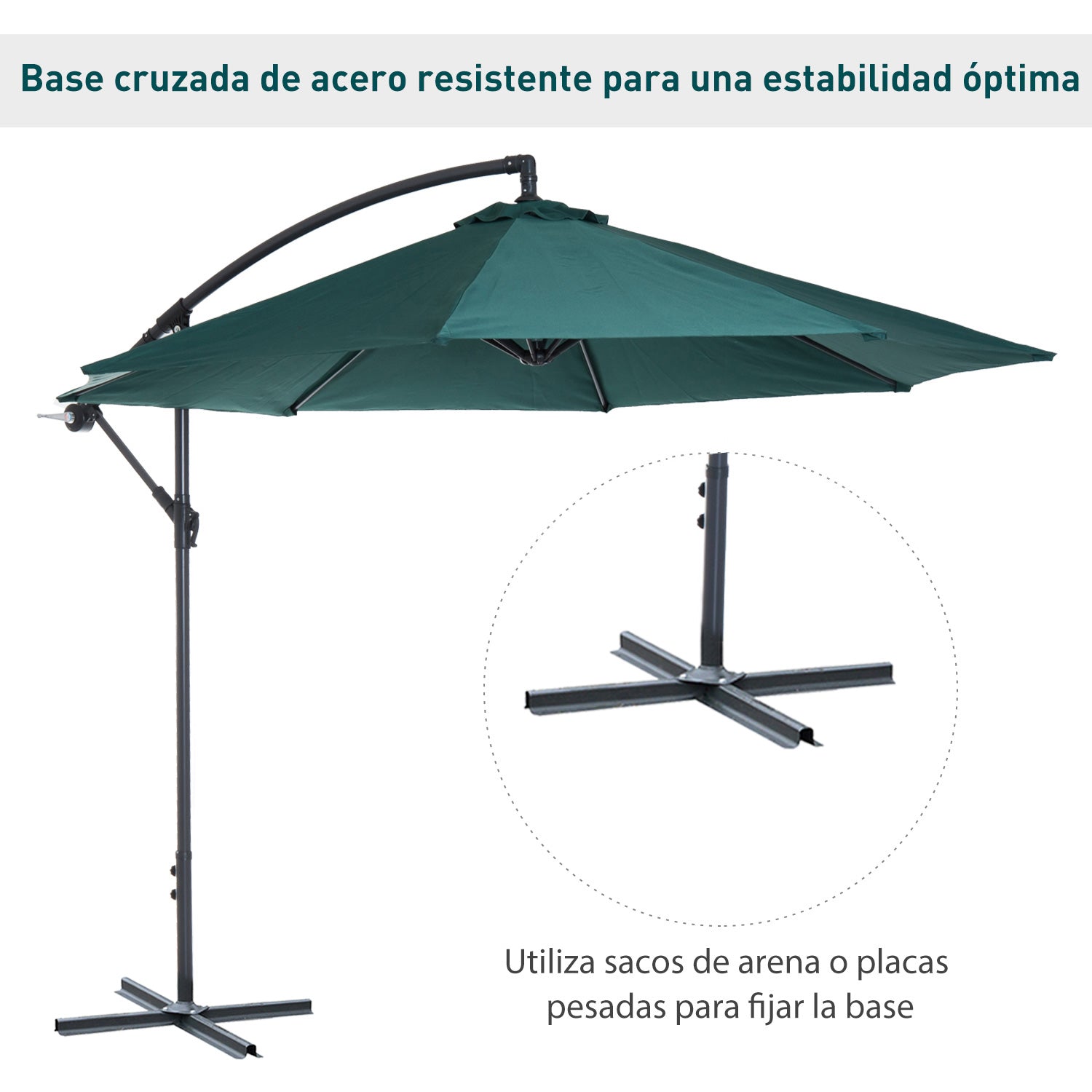 - - ROBUSTNA KONSTRUKCIJA: Kišobran s čvrstom čeličnom konstrukcijom, idealan za dugotrajnu upotrebu. Ima 8 šipki koje drže tkaninu krovića i stup promjera 48 mm. Križna podloga je uključena, ali potrebna su dodatna opterećenja koja NISU uključena